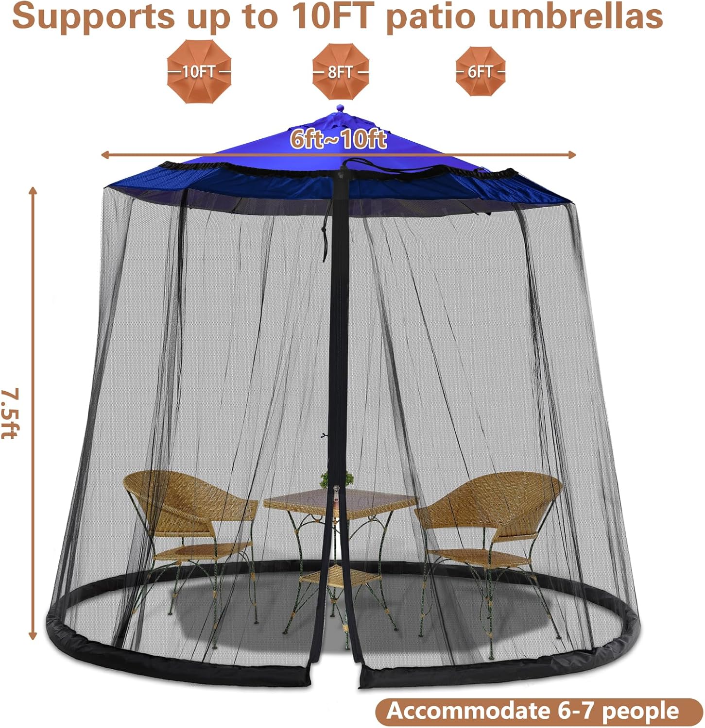 7.5-10FT Patio Mosquito Netting - Mosquito net for Patio Garden and Outdoor Umbrellas with Adjustable Elastic Cord and Zipper Umbrella net