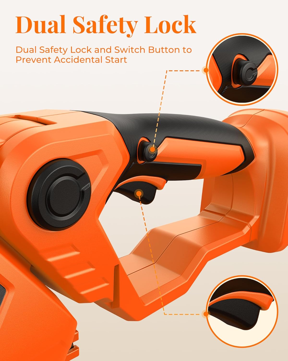 - Multiple Safety Protections: 1. safety lock to prevent accidental activation; 2. on/off switch to start the machine; 3. non-slip handle helps you to get a firm grip on the hedge trimmer