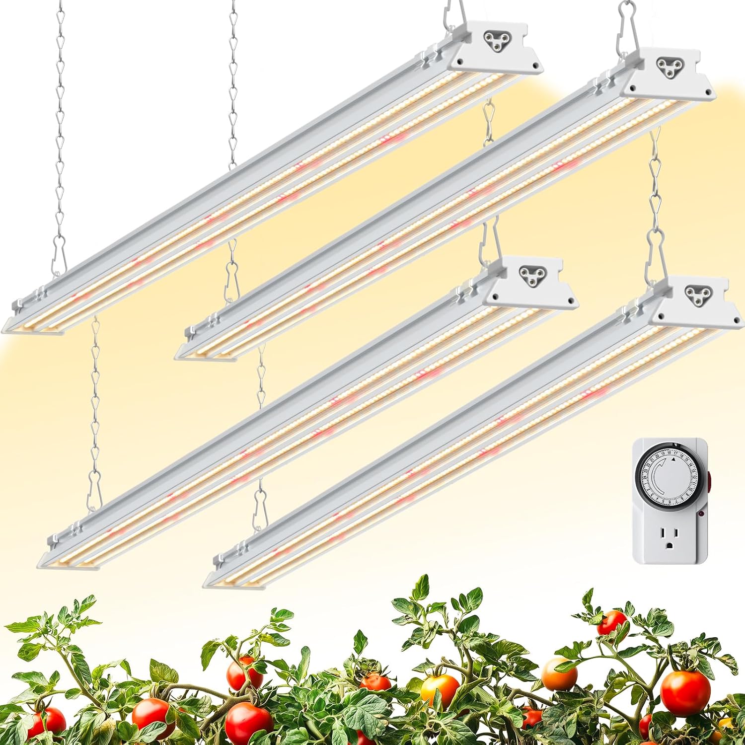 Barrina TX-S60 4FT Grow Light for Indoor Plants, 240W(4 x 60W, 1680W Equivalent), High PPFD, Full Spectrum with 660nm Red LEDs, Mechanical Timer, Linkable, Hanging Plant Light for Seedling, 4 Packs