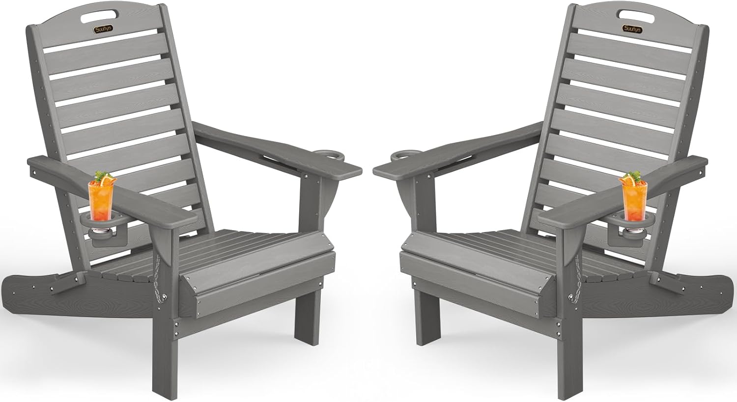 - Weather-Resistant: Made of high-quality HDPE material with wooden texture, SUUNYN sturdy adirondack chair offers excellent weather resistance, resisting fading, splitting, cracking, chipping, peeling, and rotting in harsh conditions. Plus, its easy-to-clean surface and low maintenance