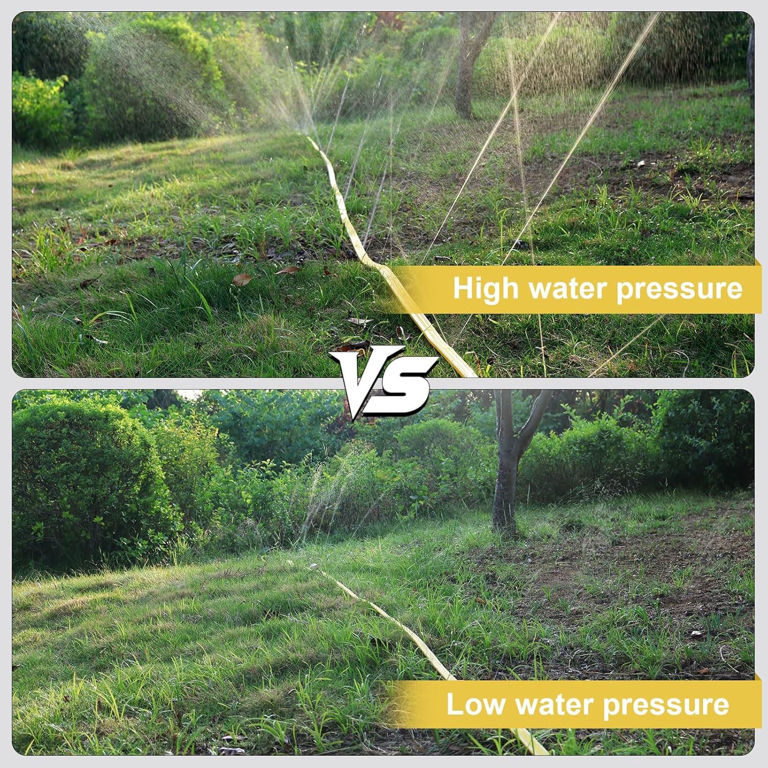 - Innovative Three-Tube Design for Efficient Watering: Featuring a unique three-tube construction and multi-directional holes, this sprinkler hose provides a spray range of 3 to 8 feet for each holes. With operating pressure between 20-65 PSI, it ensures consistent water delivery while conserving water—perfect for small gardens, large lawns, or even sprinkler irrigation system setups.