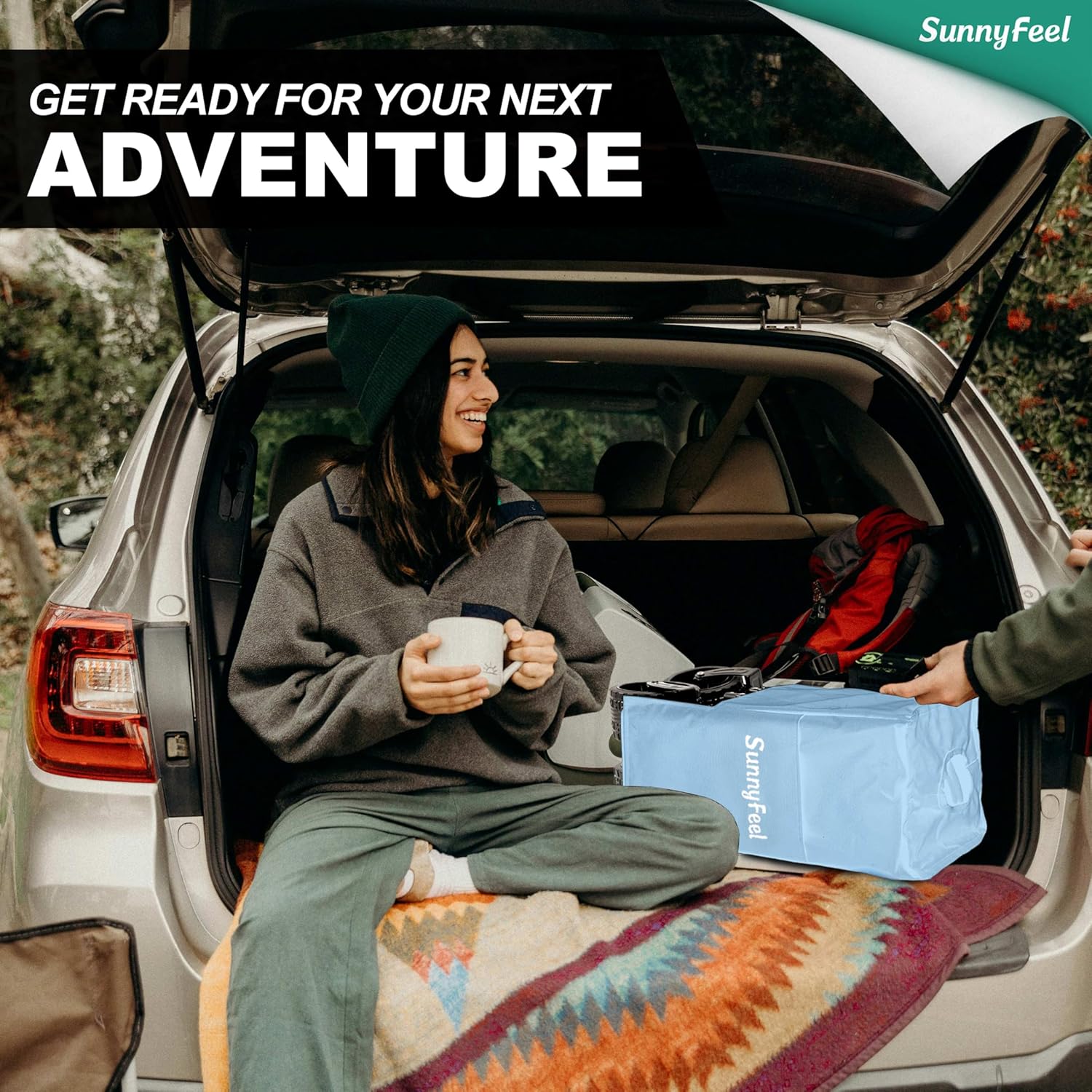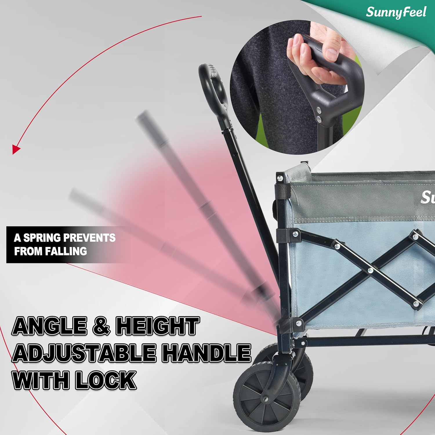 - 【Upgraded Extra-Large Capacity & Cup Holders】The SunnyFeel wagon is built to effortlessly manage heavy loads with its expansive interior and impressive weight capacity. Its enhanced design easily fits camping gear, groceries, or outdoor supplies in one convenient trip, simplifying your transport needs. With a spacious 300L capacity, it delivers dependable performance for tough tasks. Plus, the two mesh cup holders keep your beverages stable and upright