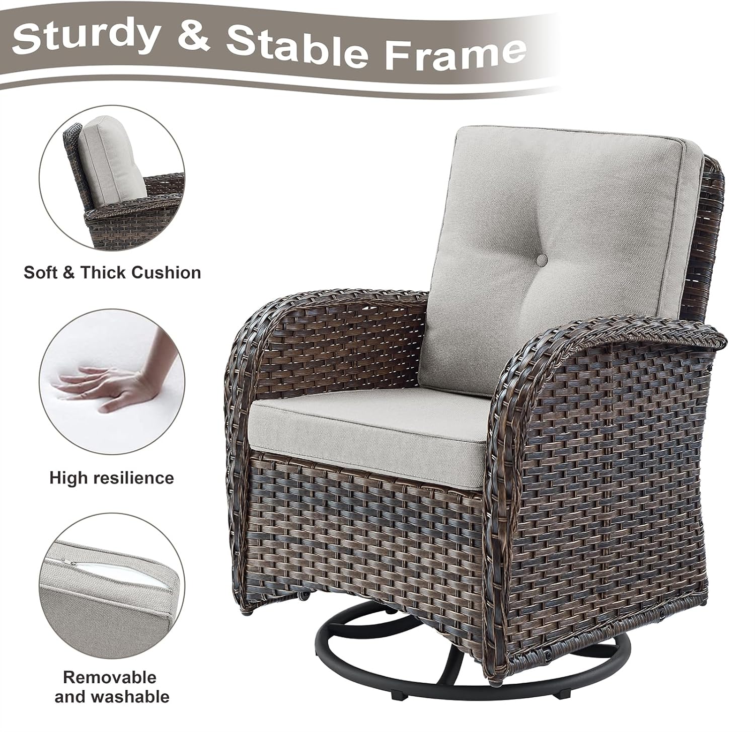 HUMMUH 5 Pieces Wicker Patio Furniture Set,Outdoor Swivel Gliders Rocker,Patio Ottomans,Glass Top Side Table,Outdoor Conversation Set for Porch Deck Backyard Poolside