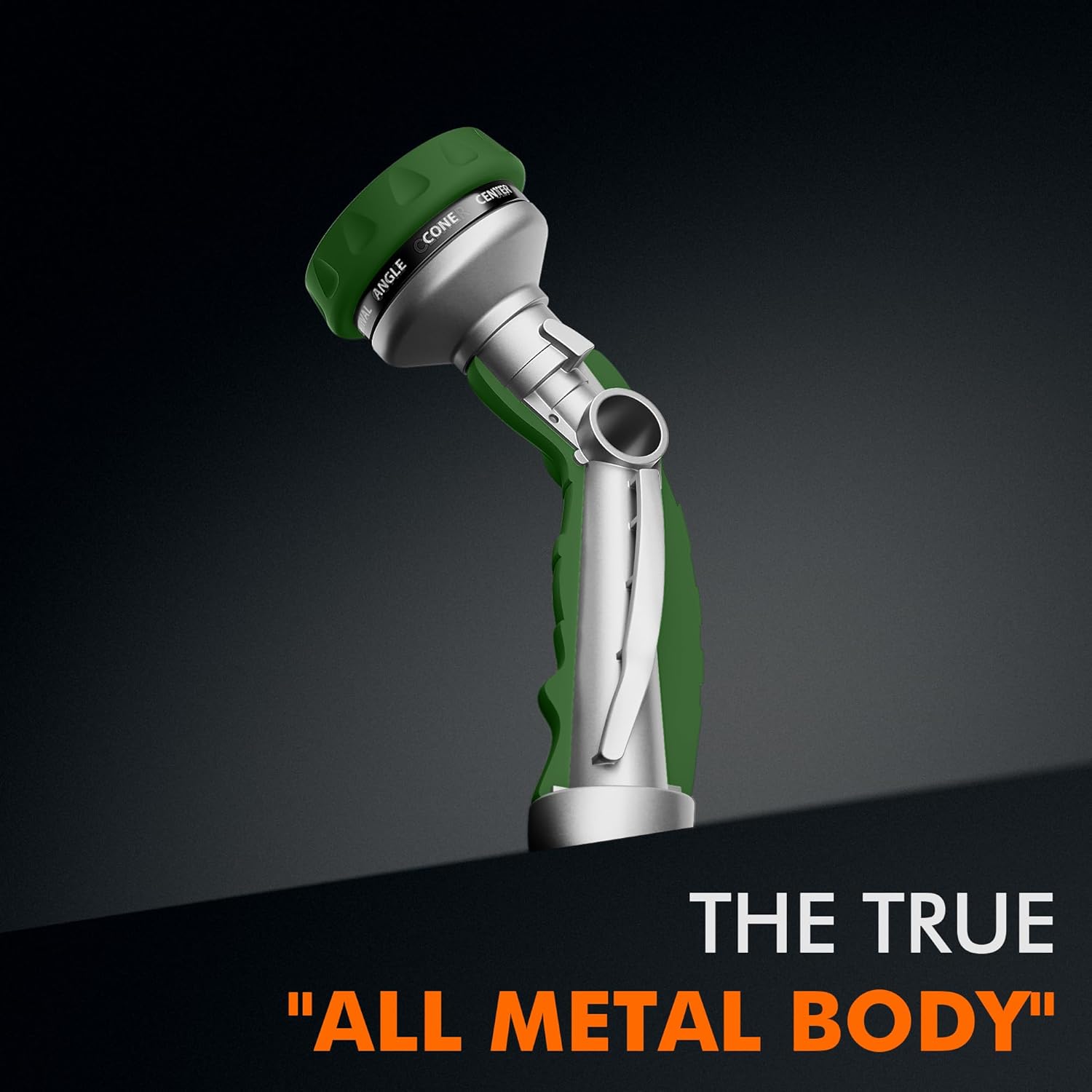 - 【Heavy Duty Metal Hose Nozzle】Constructed with premium zinc-alloy material, this hose nozzle sprayer is solid & strong to resist daily drops and shocks. The bronze powder painting, TPU coating and rubberized bezel dial can enhance durability & flexibility and withstand hard impacts & heavy force. A long-lasting garden hose nozzle you can count on many years.
