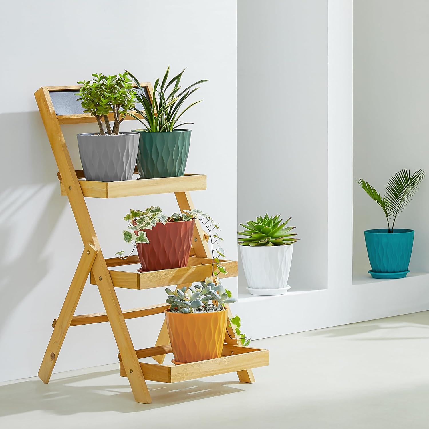 FaithLand 6-Pack 6-Inch Plastic Plant Pots with Saucers | Thickened PP Material, Modern Wave Texture, Enhanced Drainage for Indoor/Outdoor Garden Plants | Tricolor Value Set