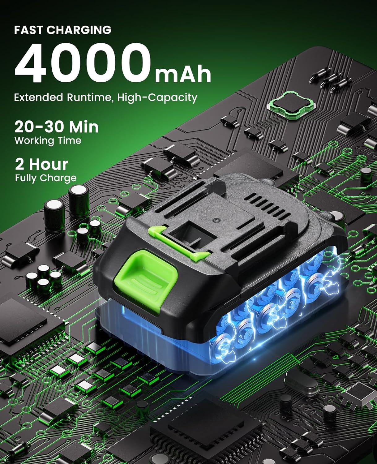 - Weed Eater Battery Powered with Fast Charging: Powered by a 21V, 4,000 mAh battery, this cordless grass trimmer runs 20-30 minutes—enough to tackle an average small yard on a single charge. The clear digital display keeps you informed of remaining runtime, and the rapid charger refuels your battery in just 2 hours. Enjoy a quieter (50% less noise than gas models), fume-free experience.