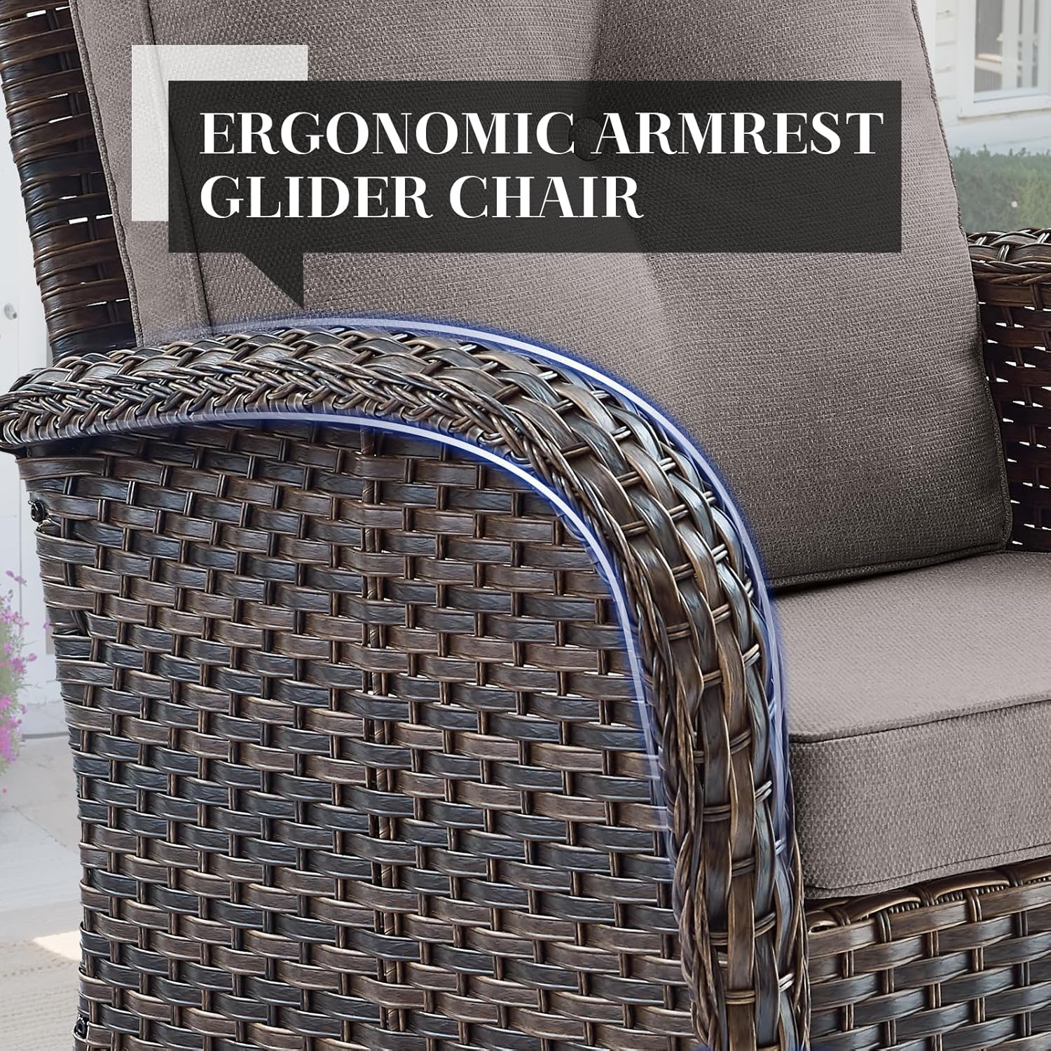 HUMMUH 5-Piece Patio Furniture Set with Fire Pit,Wicker Patio Glider Loveseat Outdoor Swivel Rocker Chairs for Backyard,Poolside,Deck
