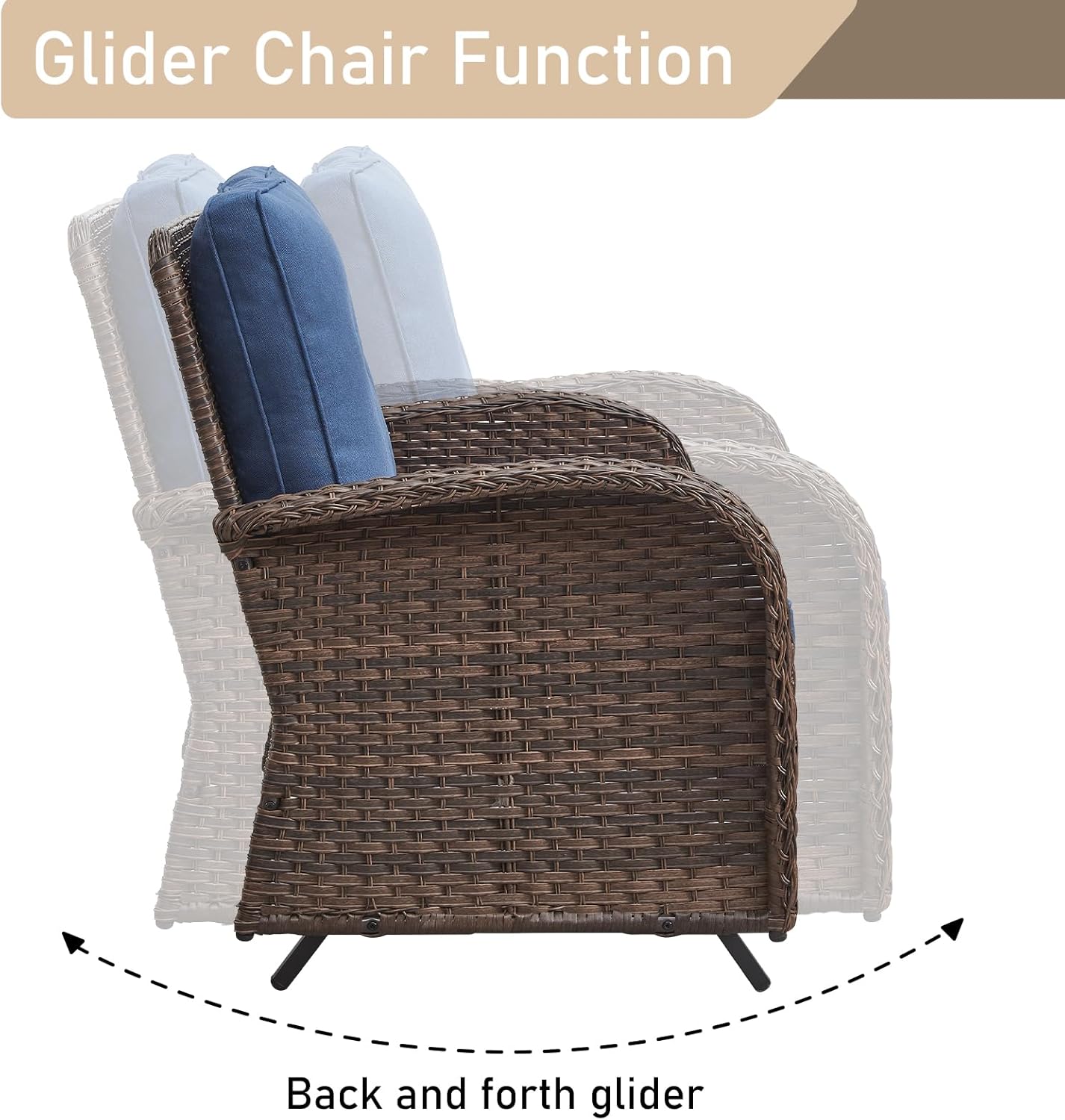 HUMMUH 5-Piece Patio Furniture Set with Fire Pit,Wicker Patio Glider Loveseat Outdoor Swivel Rocker Chairs for Backyard,Poolside,Deck