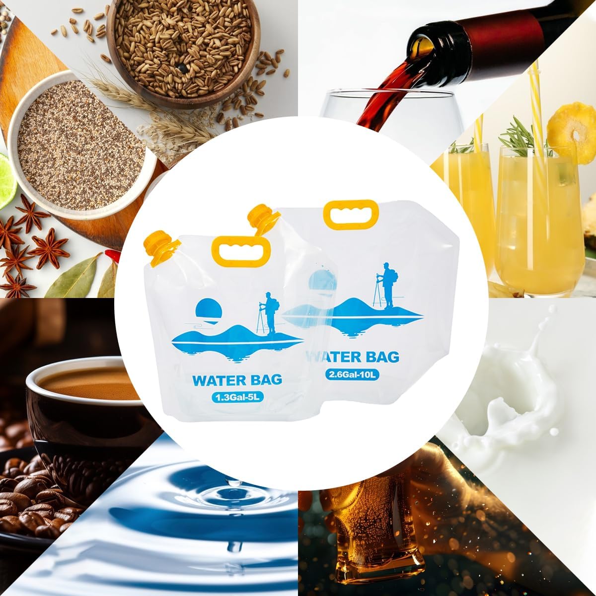Collapsible Emergency Water Container Bag,WaterStorageCube,Flat Folding,BPA Free Food Grade,Clear Plastic Storage Jug for Camping Hiking Backpack,No-Leak Freezable,Water Bottle 1.3 Gallon/2pcs