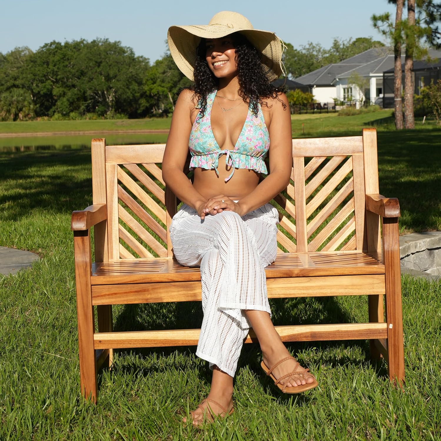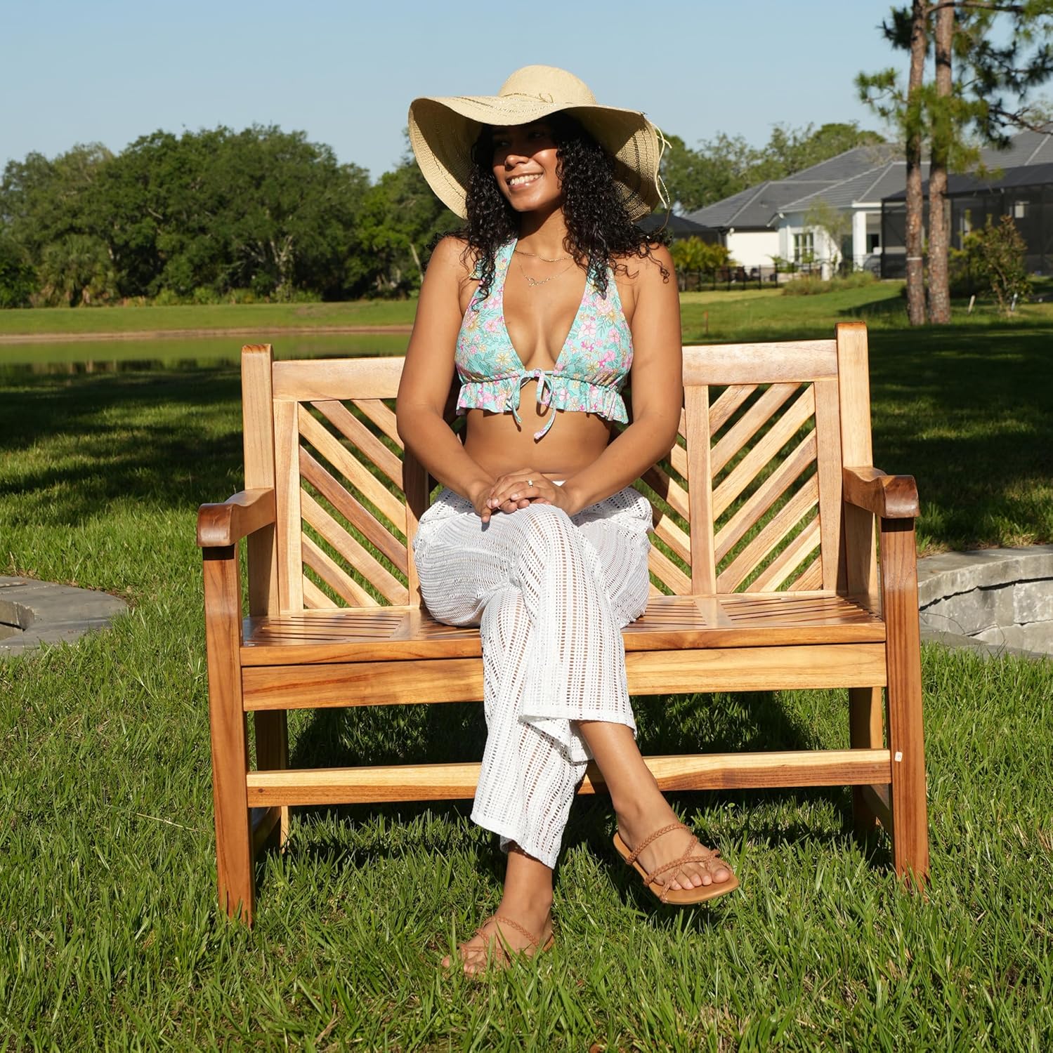 EcoDecors Eleganto 41 inch Outdoor Bench Teak Wood Garden Bench for Patio with Armrests and Backrest for Indoor Use and Outdoor, in Natural Color