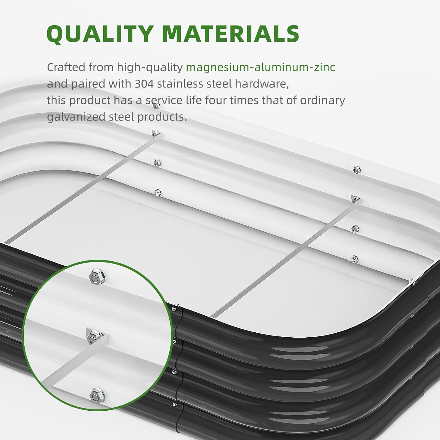 - Sturdy and Durable Materials: Made from high-quality zinc-magnesium aluminum alloy steel, this raised flower bed is built to withstand the elements while providing a secure environment for your plants to thrive. With a remarkable lifespan of over 30 years, this garden bed is built to withstand the test of time.