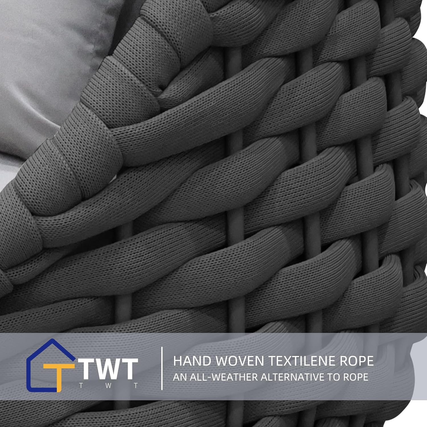 - NO required assembly & easy to clean:Our outdoor couch NO required assembly, just take them out and use. TWT patio chairsโ seat are easy to clean and polyester rope relatively soft. No need to take more extra special care to maintain patio couch