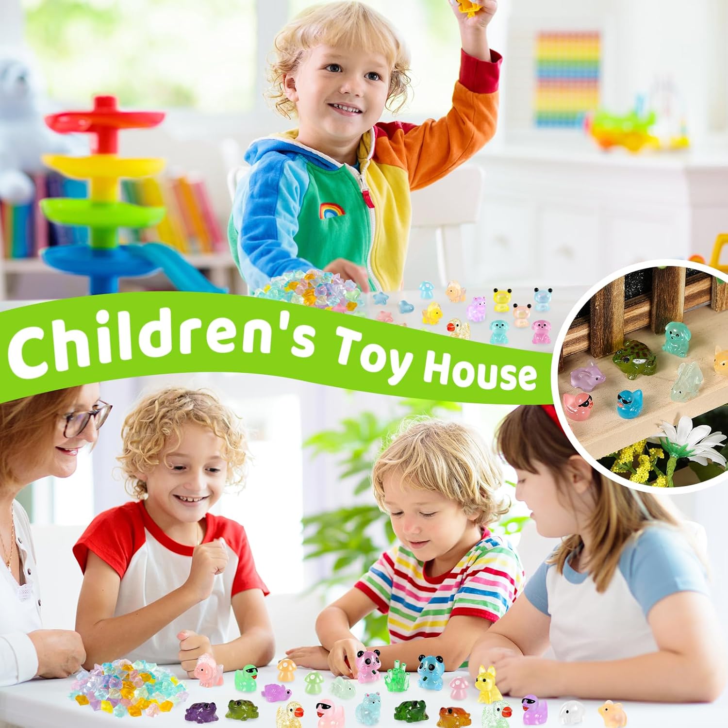 - Package Include: you will receive 150 pcs mini luminous miniatures in mix colors, including 6pcs mini resin elephants, 12pcs chicks, the number of puppies in the two styles is 9 and 6 respectively, 10 pcs tiny duck with sunglasses, 10 pcs mini resin mushrooms, 8pcs turtles, 4pcs mini resin toads, 4pcs hearts,4pcs lizards,4pcs alpacas, 22pcs mini resin ducks,6pcs pigs,6pcs stars,5pcs frog, 6pcs dinosaurs, 24pcs sequin duck, 3pcs pandas,1pcs bamboo and a bag of about 91 pcs Colored Crushed Ice. Tiny animals figures the quantity is enough to meet your diverse needs