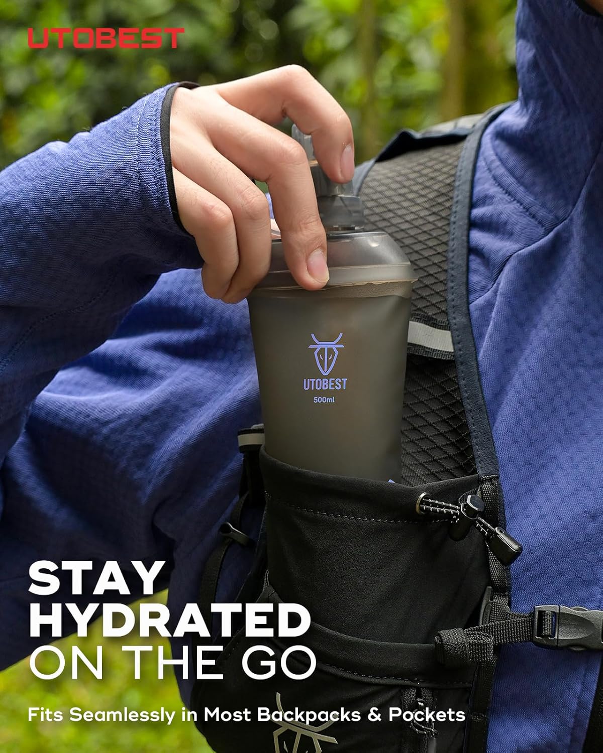 - Ultralight & Portable: 2 pack weighing just 73.6g (500ml), the soft water bottles offer compact hydration without adding bulk, making it perfect for outdoor sports and adventures.