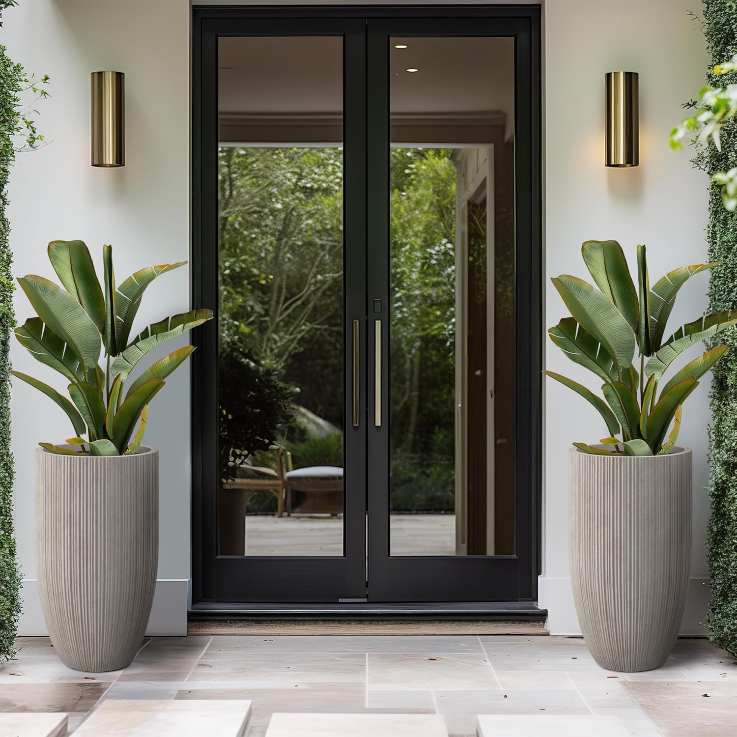 Kante 24 Inch Tall Round Concrete Planter, Large Indoor Outdoor Plant Pots with Drainage Hole and Rubber Plug, Modern Decorative Garden Pots for Home Patio Porch, Textured Weathered Concrete