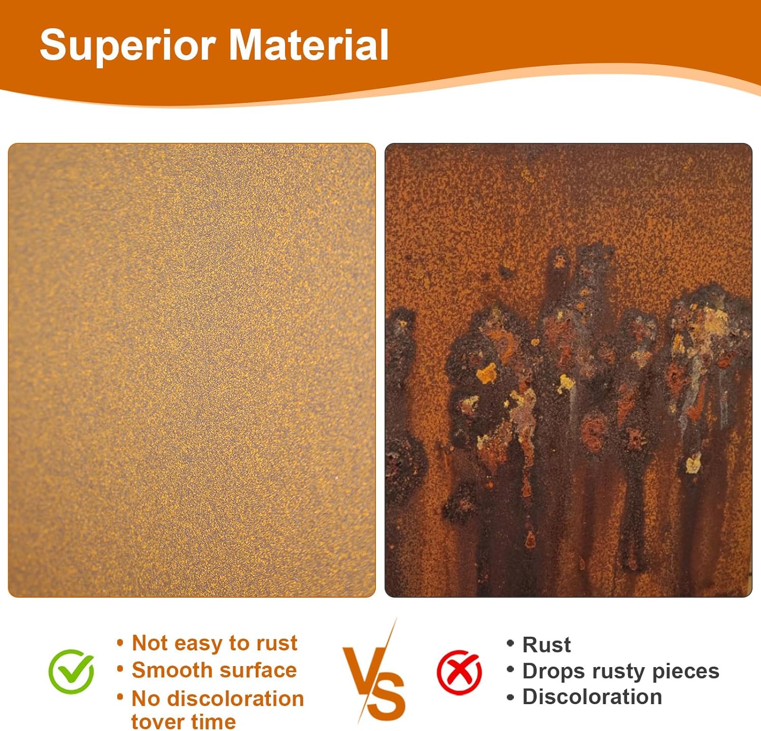 - 【Superior Material】:Weatherproof Steel Planter-This weatherproof steel planter is constructed with weatherproof steel. Pre-rust and form a protective layer on the surface, with good oxidation resistance and corrosion resistance, effectively protect the planter, thus extending the service life, and the color will not change over time, it should be noted that you need to wear gloves in the process of use