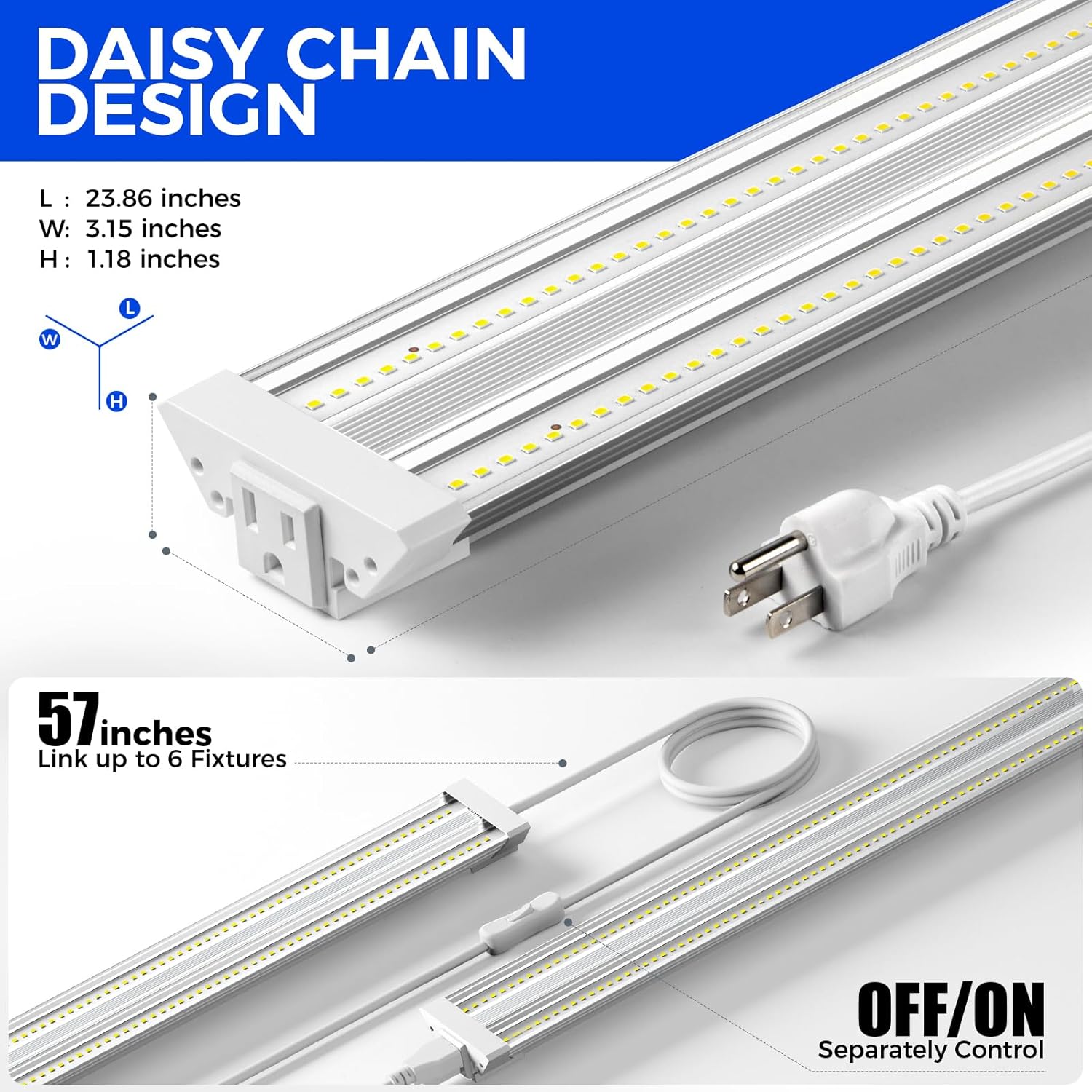 - Linkable Design & Full Light Coverage: The LED grow light supports daisy chaining up to 6 lights, each with 57 inches power cords and individual on/off switches for customized lighting. This flexible setup ensures comprehensive light coverage, making it ideal for indoor vegetable gardens