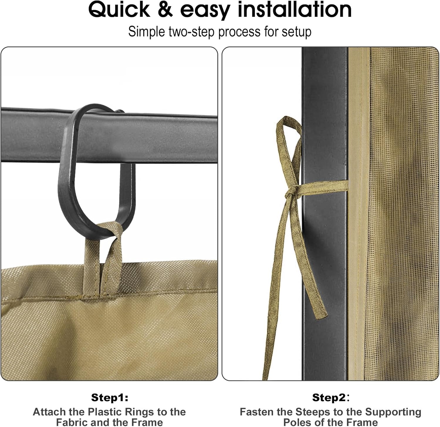 - âąď¸ăEasy Setup â No Tools Neededă Hangs in Minutes! Includes 52 hooks + 12 lashing ropesâjust attach to your gazebo frame & secure with straps. Zippered doors on all 4 sides for easy access. Even beginners can DIY!