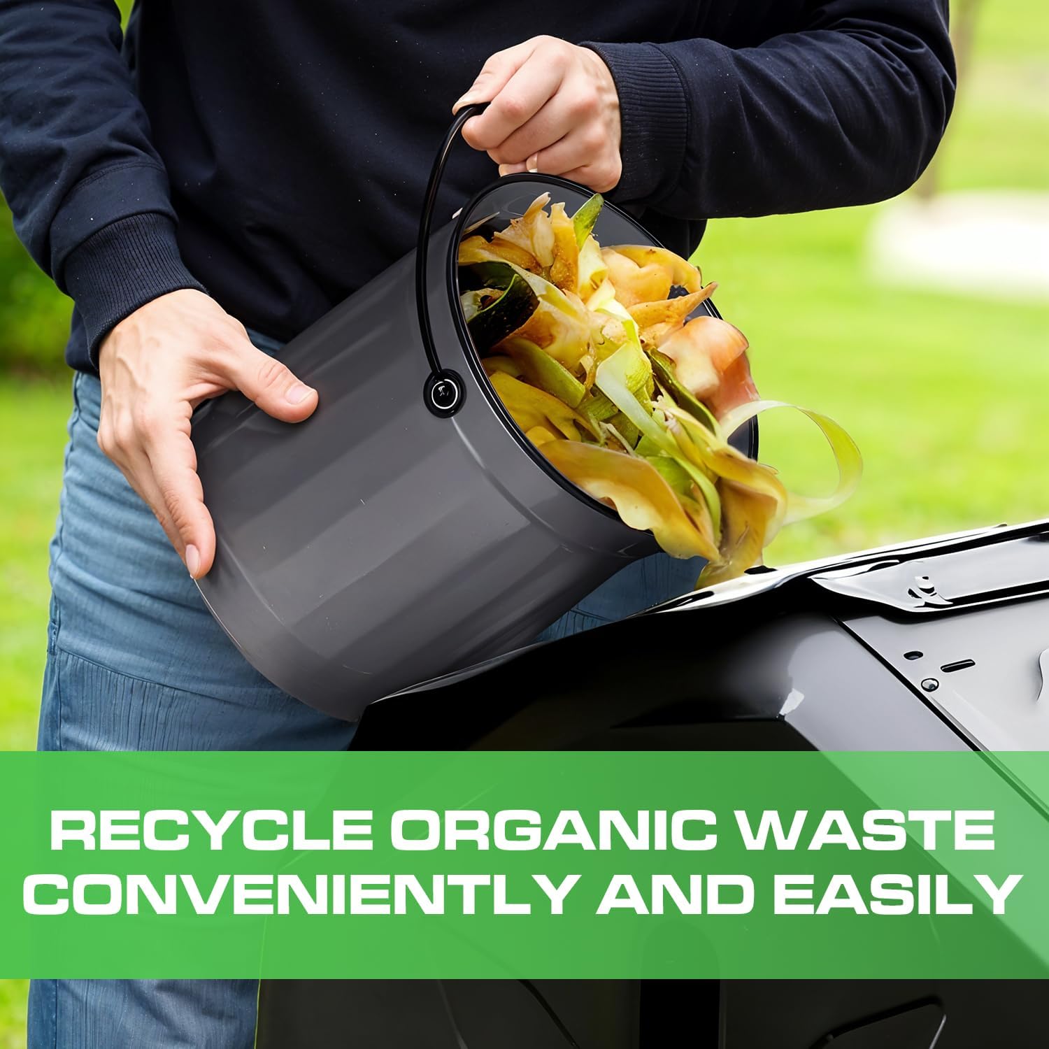 - High Quality Compost Bin Kitchen Counter: This compost bin with charcoal filter made of durable steel. Our indoor compost bin, food waste bin for kitchen is sturdy construction, ensures longevity, resists rust, and is easy to clean. Easy to carry with a sturdy handle.