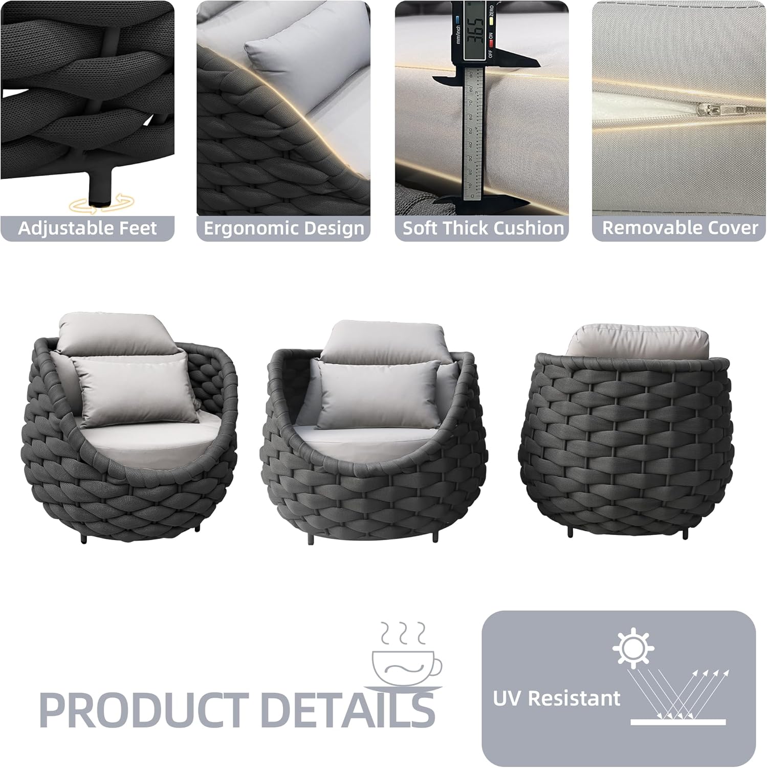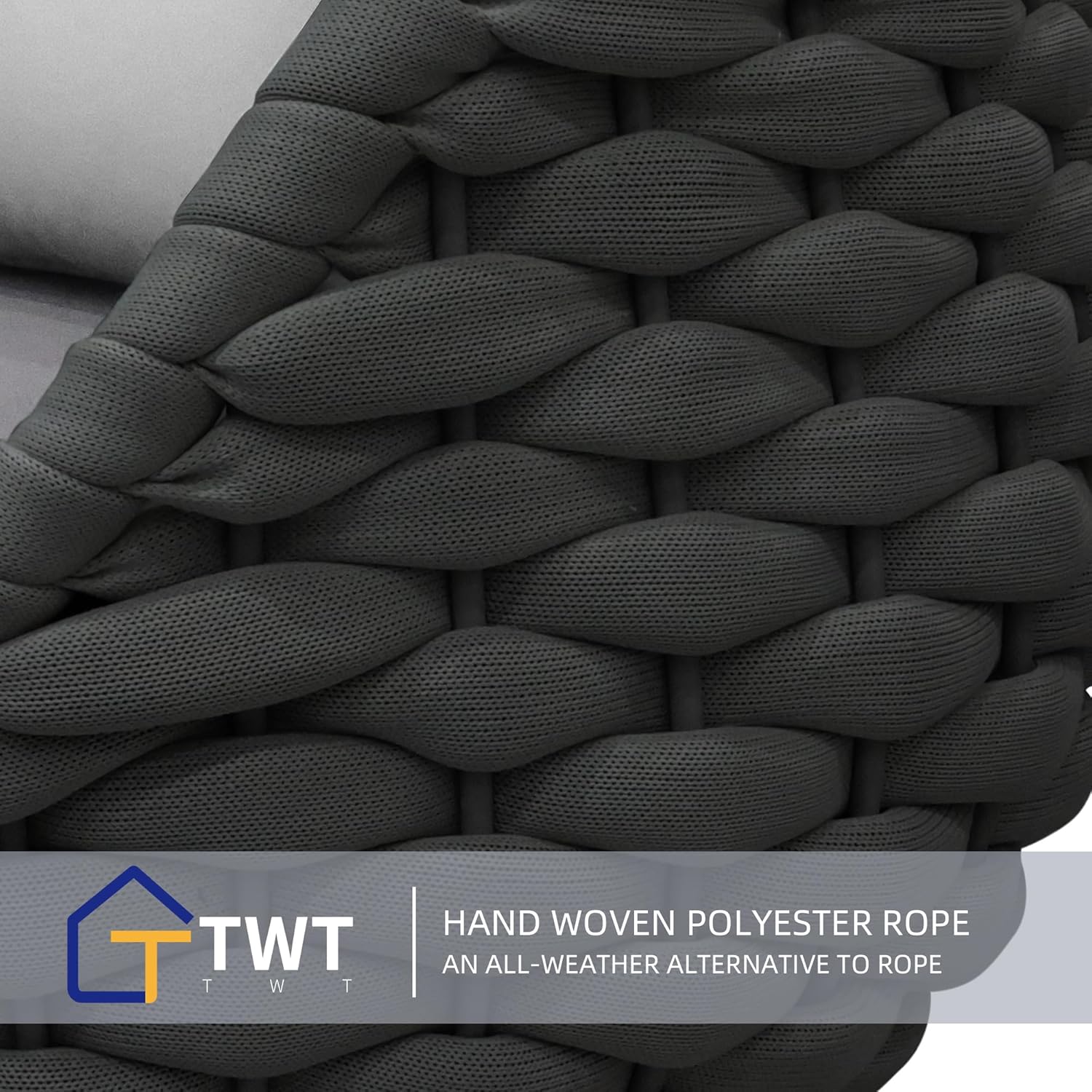 - NO required assembly & easy to clean:Our outdoor couch NO required assembly, just take them out and use. TWT patio chairsโ seat are easy to clean and polyester rope relatively soft. No need to take more extra special care to maintain patio couch