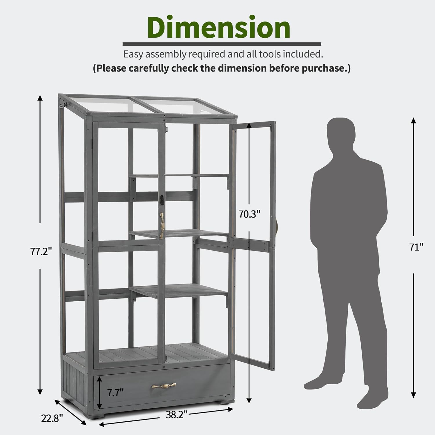 - One Push-pull Drawer: The wooden greenhouse includes a push-pull drawer, equipped with a high-quality sliding rail that ensures smooth pushing and pulling when used; You could store flowerpots, seeds, tools, etc. in it to keep the environment tidy