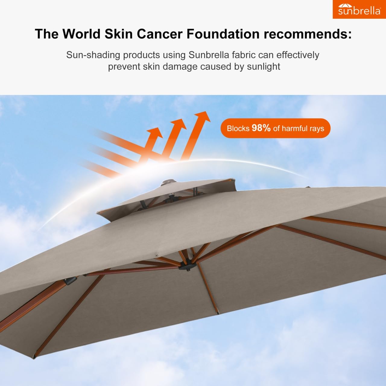 PURPLE LEAF 10' X 10' Patio Large Cantilever Umbrella Outdoor Square Wood Umbrellas Offset Umbrella Heavy Duty Sun Umbrellas for Garden Deck Pool, Heather Taupe