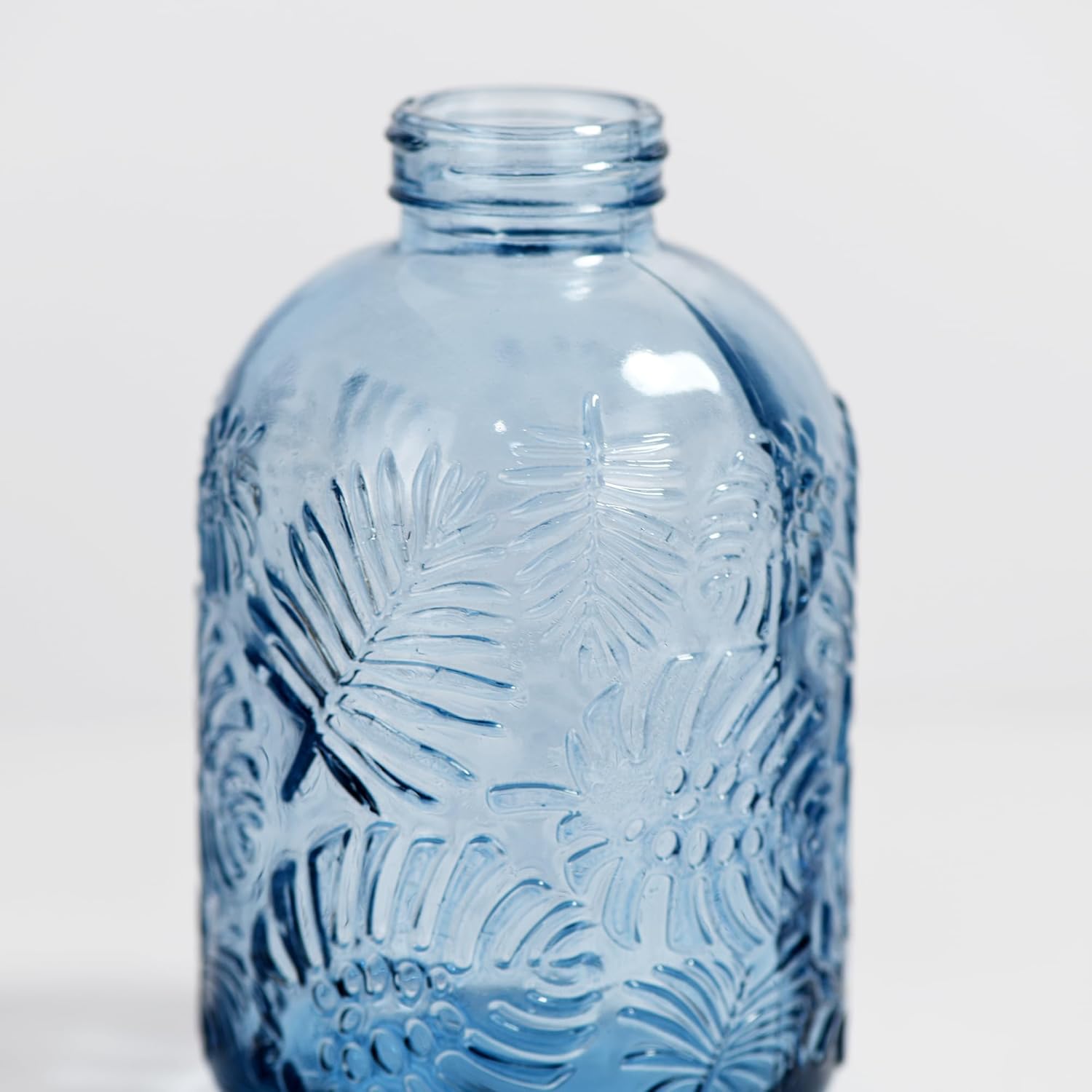 11.8 Ounce Glass Plant Spray Bottle, Glass Leaf Print One Handed Watering Can with Antique Brass Plastic One Handed Top Pump, 7.6 Inch Tall Indoor and Outdoor Plant Small Spray Bottle (Blue)