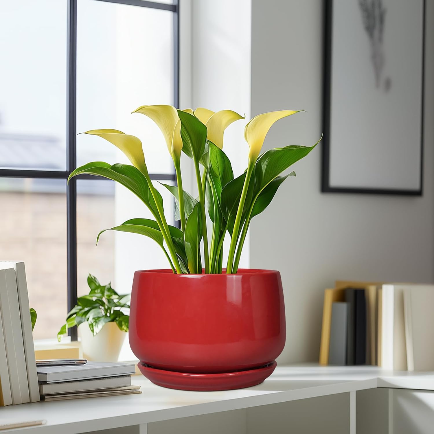 - Modern Planter: Adopting elegant modern design, classic ceramic indoor plant pots with curved contours, Red planter add highlights to your indoor or outdoor space decoration, suitable for various styles of home decor, room decor, bathroom decor, living room decor, office decor, garden decor