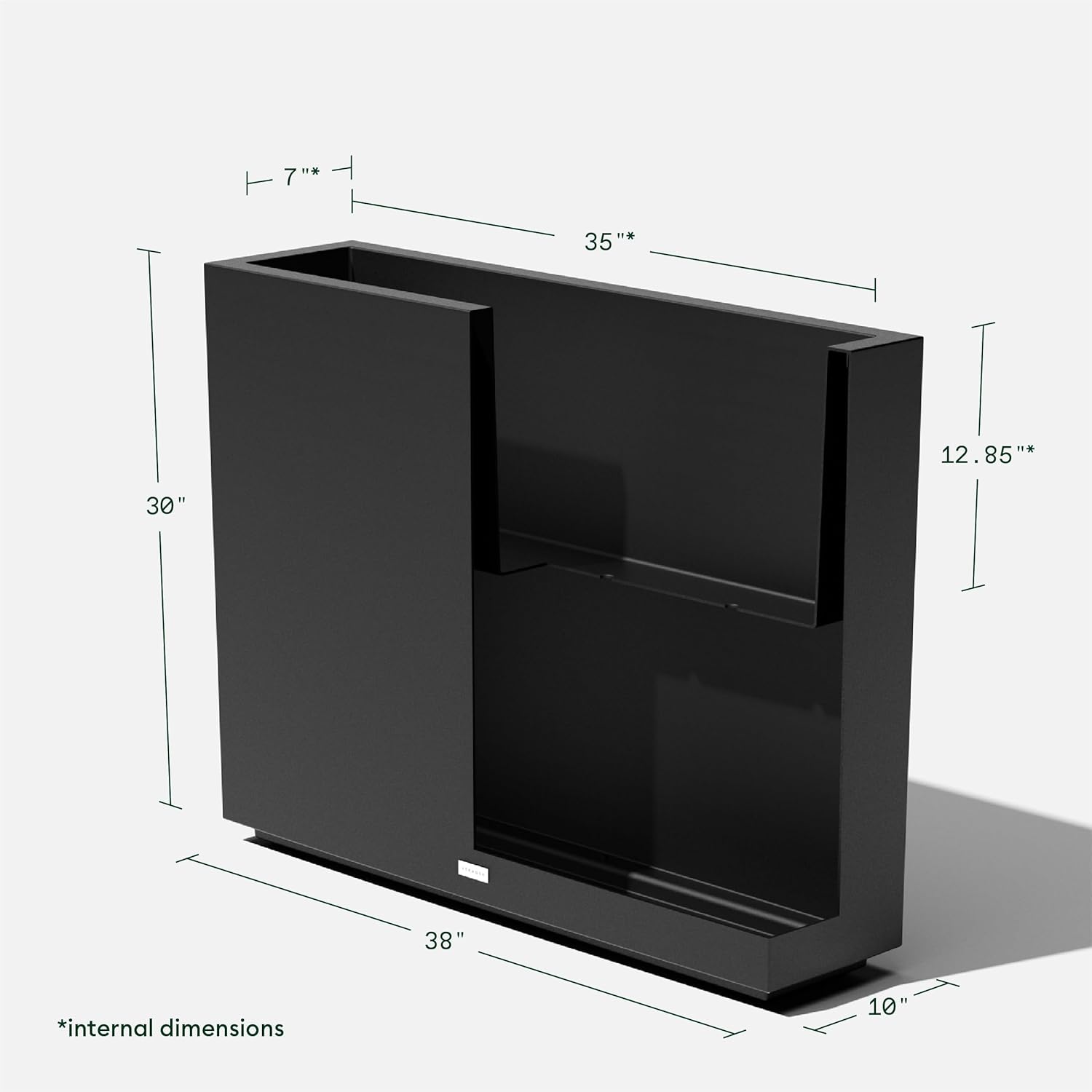 - DIMENSIONS & DETAILS: This double-walled planterโs exterior dimensions measure 30โ in Height, 10โ in Width, 38โ in Length. With the removeable insert bucket installed, the interior dimensions measure 12.85โ in Height, 7โ in Width, 35โ in Length. It comes fully assembled for easy use
