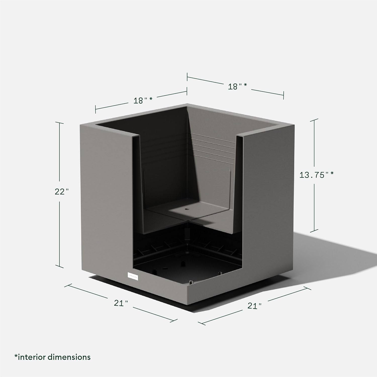 - DIMENSIONS & DETAILS: This double-walled planter’s exterior dimensions measure 22” in Height, 21” in Width, 21” in Length, and the interior dimensions measure 13.75” in Height, 18” in Width, 18” Length. It comes fully assembled for easy use
