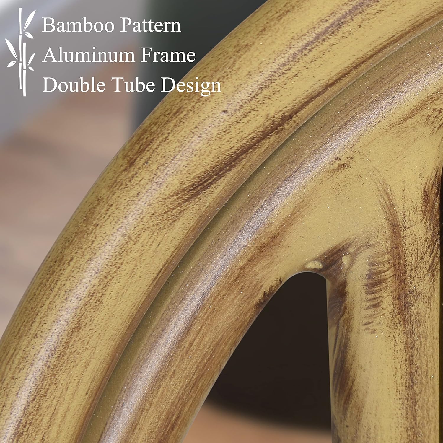 - Bamboo Print Finish: It's made of powder-coated aluminum that's weather-resistant and rust-resistant. Then a bamboo-look finish is hand applied to make these aluminum bar chairs look bamboo.
