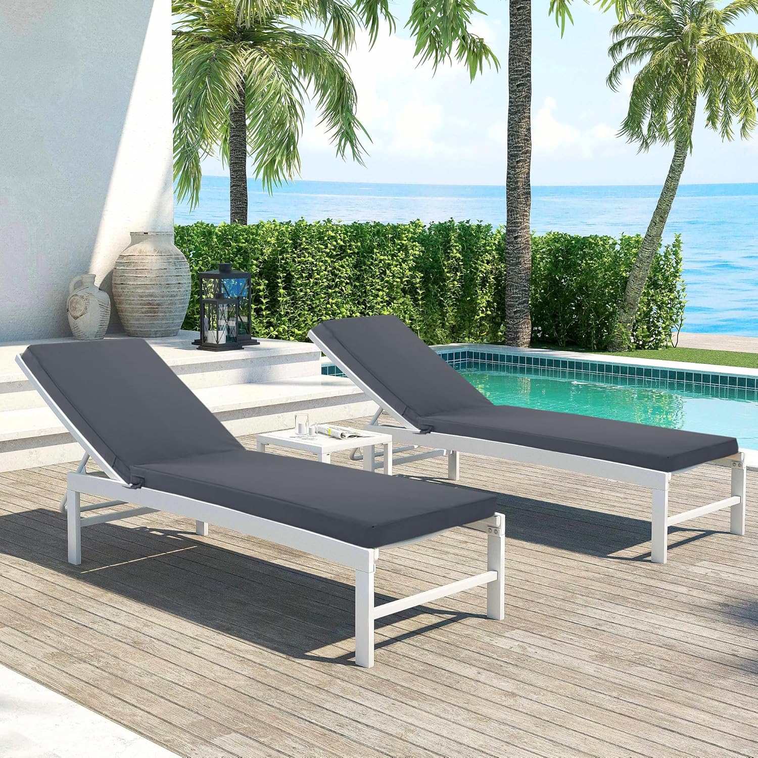 Chaise Lounge Cushions Outdoor Set of 2 - Waterproof and Fade Resistant Sun Lounger Replacement Cushions - Patio Lounger Pads with Removable Cover for Pool, Deck, 80 x 26 x 3 Inch, Dark Grey