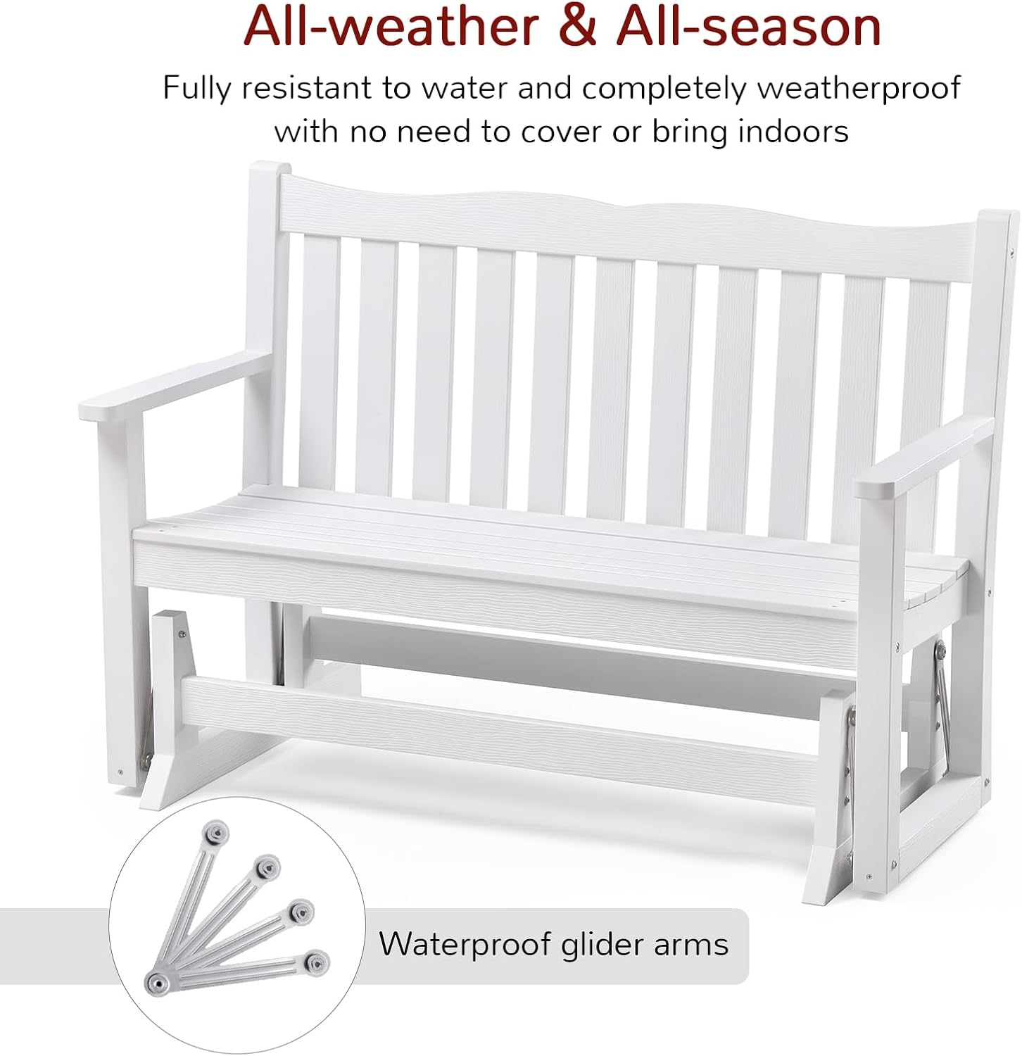 Stoog Outdoor Glider, 2 Person All-Weather Glider Bench with 800 lbs Weight Capacity, Never Fade or Rot, for Backyard, Garden, Deck, and Poolside, White