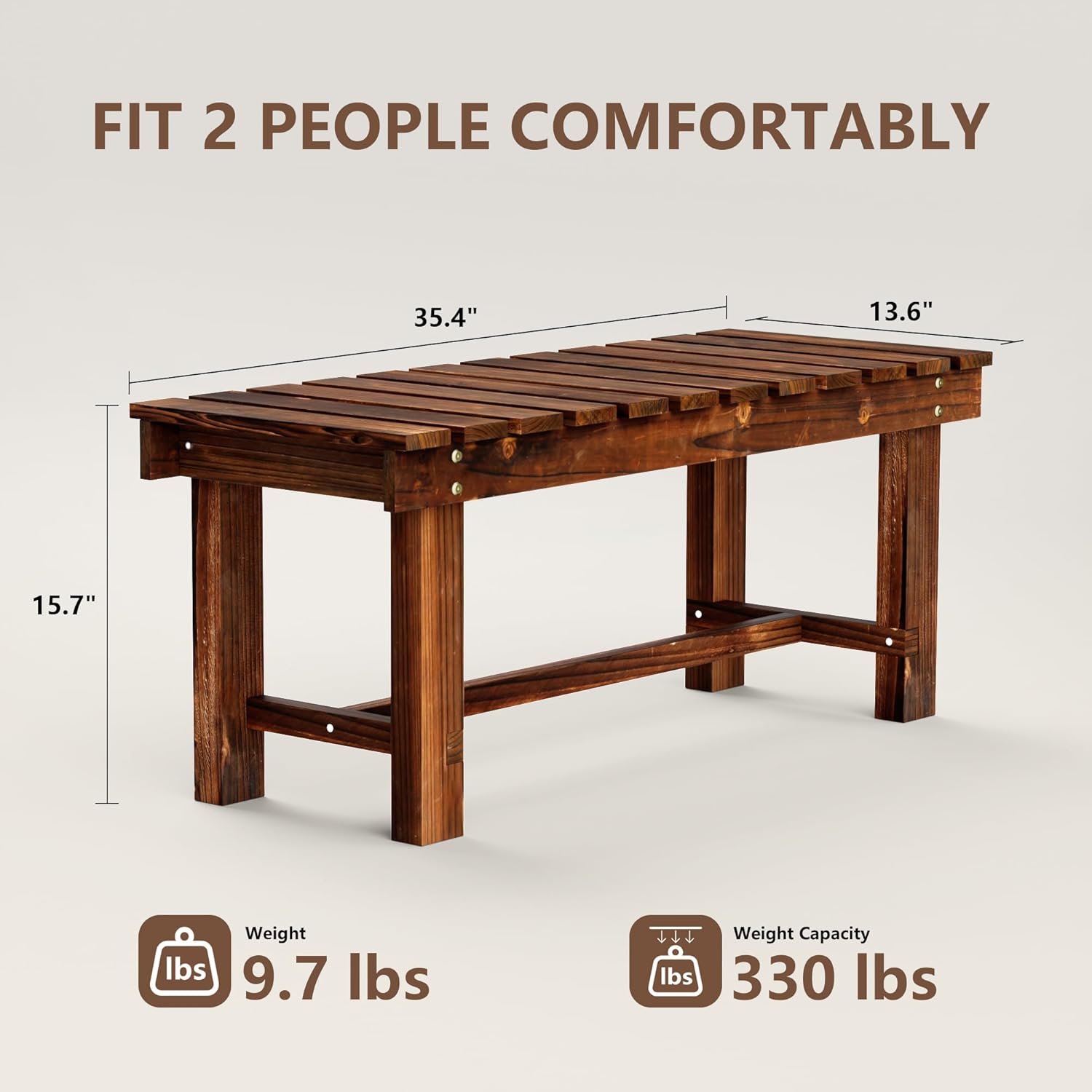 - STRONG LOAD-BEARING - Crafted from cedar wood treated with 300°C high-temperature carbonization, this garden bench resists deformation and corrosion. Thickened planks and rust-proof screws ensure a weight capacity of 330 lbs(35.5")/400 lbs(47.2"), comfortably seating two/three people