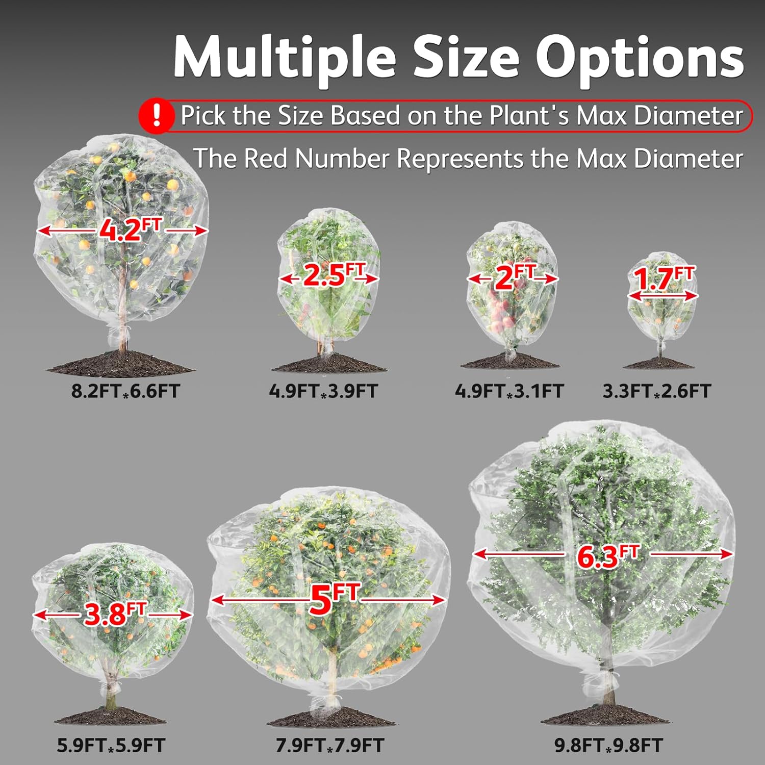 - JOJOLEE Garden Net Kit: This kit includes 2 packs of 5.9 ft(H) x 5.9 ft(W) garden net with a spread diameter of 3.76 ft. Before buying, please take the time to check the diameter and height of your plant to make sure the insect netting is sufficient to cover it.