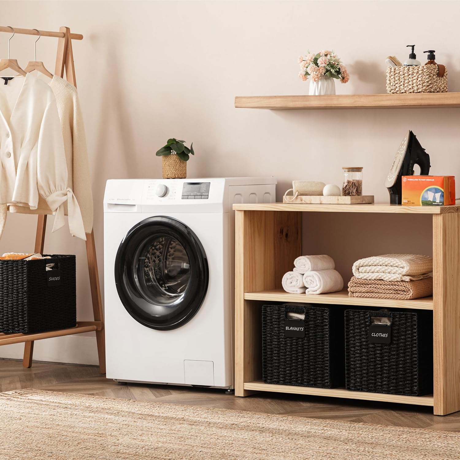 UBBCARE 2 Pack Wicker Basket, 13×13 Storage Cubes with Label, Foldable Cube Storage Bin with Handle, Square Storage Basket for Shelves, Woven Paper Rope Basket for Organizing, Black