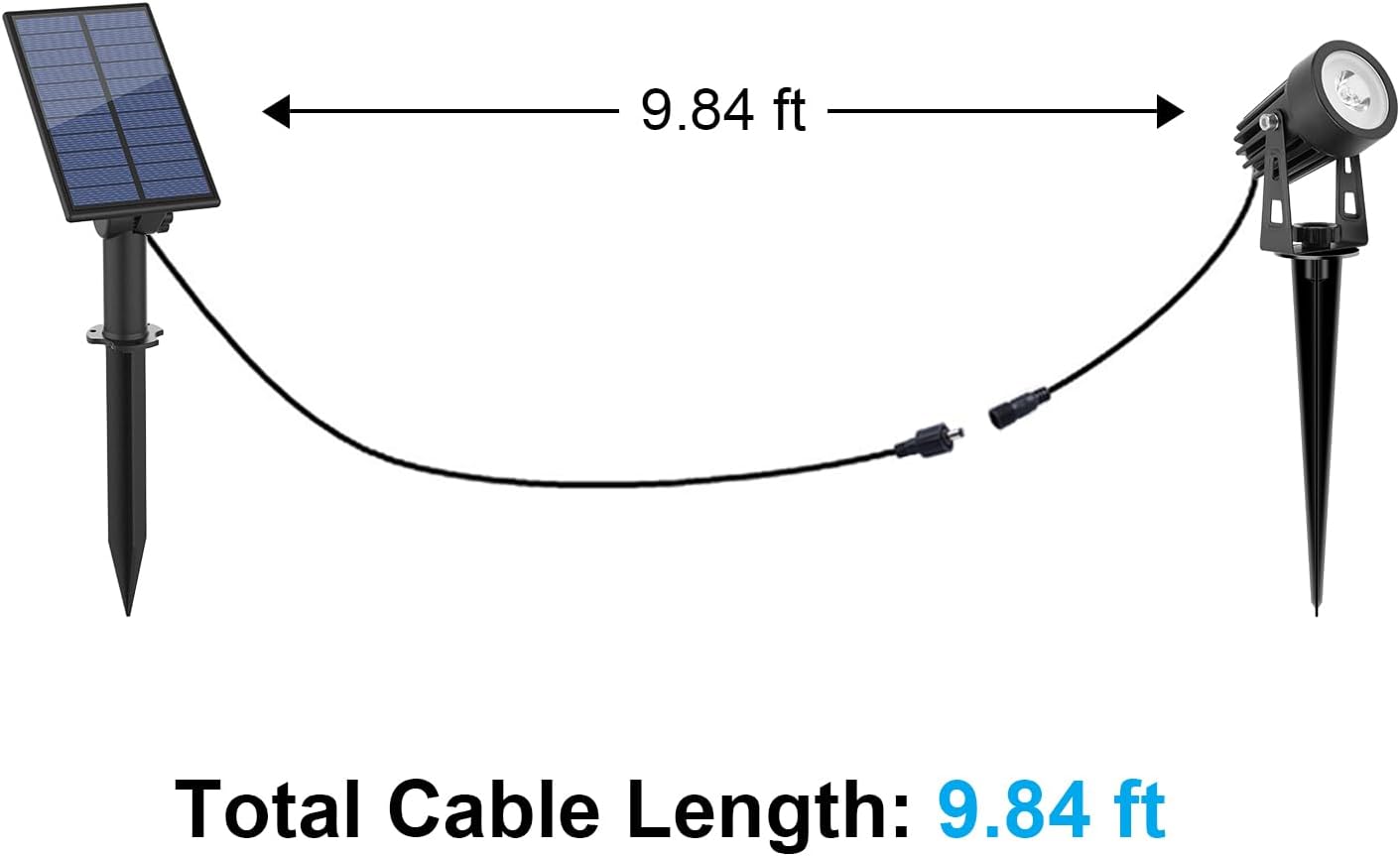 - 【2 installation methods】The solar panel and light can be installed in the ground or mounted on the wall with included screws. Each ground light with 118inch/3m cable, 270° Adjustable freely up or down to meet different requirements