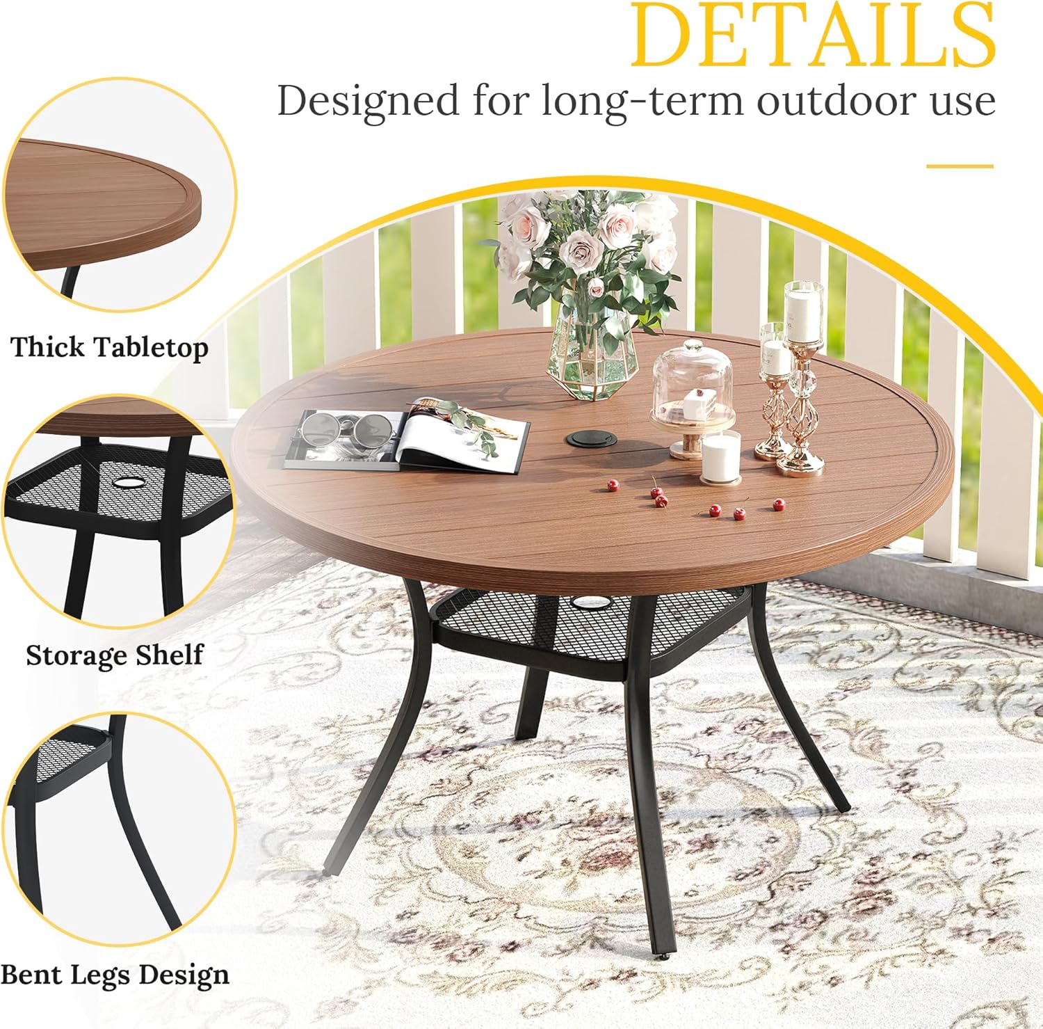 VICLLAX Round Patio Table with Adjustable Umbrella Hole, All Weather Outdoor Round Dining Table for Lawn Garden, 41.2"x 28" Walnut Wood-Like Outdoor Coffee Table