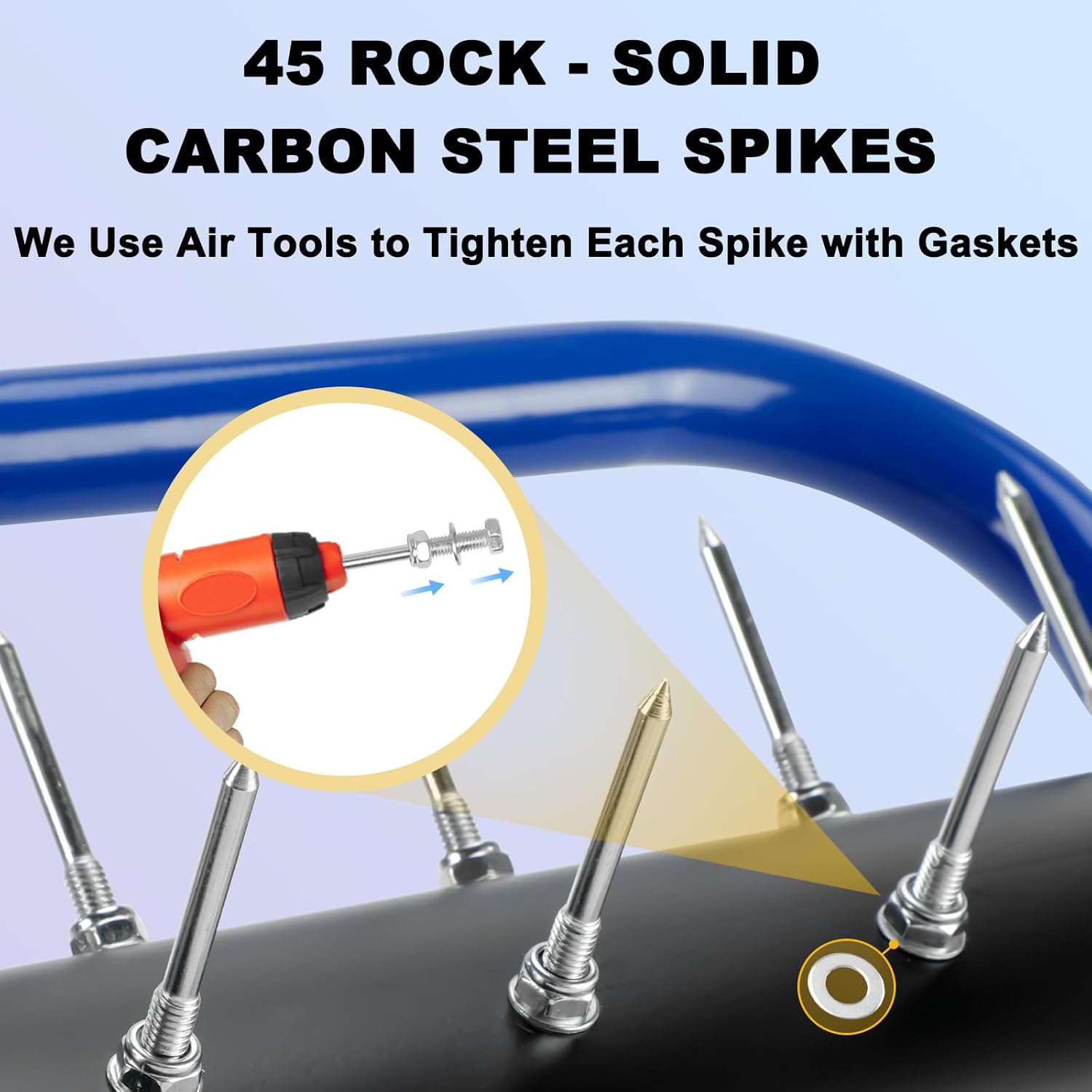 - Reinforced Steel Spikes – No Loosening or Breaking: KEMETIK aerator lawn tool uses high-strength 2" steel spikes that stay securely in place. Each spike is tightened with stainless steel washers using pneumatic tools, ensuring durability on all soil types.