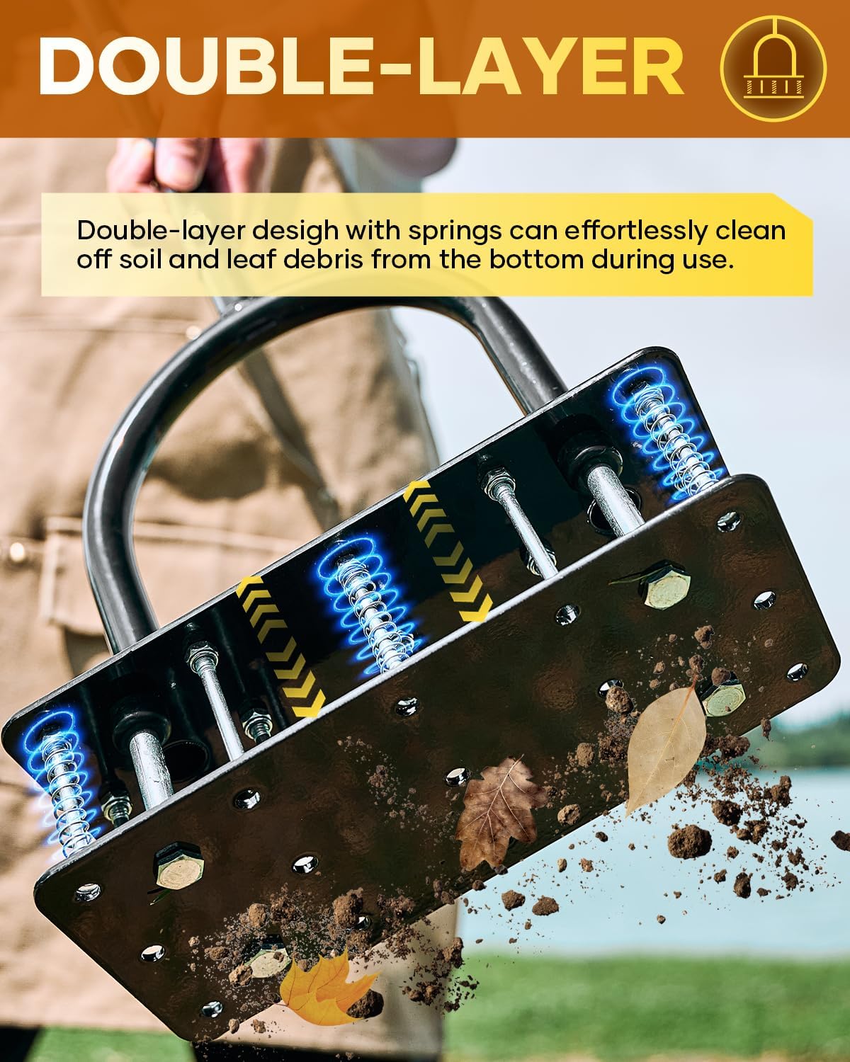 - 【Upgraded Double-Layer Spring Design】This manual aeration Lawn lawn tool adopts an innovative built-in double-layer spring design, which solves the trouble of manually removing soil and dry leaves after aeration. During use, soil and leaf fragments can be easily ejected from the bottom. The thickened spring avoids the problem of leakage from the bottom and inability to rebound, making it more convenient and effective to use, and also reducing the risk of accidental injury.