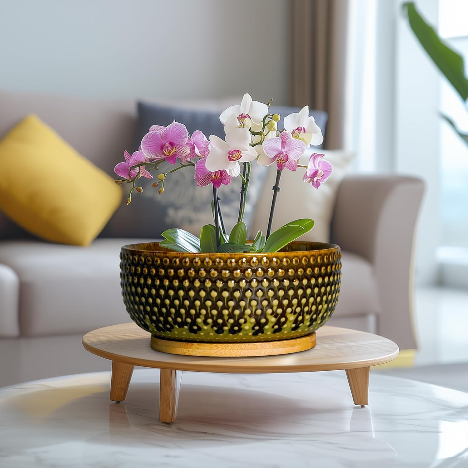 - Planter Design: This bonsai pot features a textural, raised dot design in a modern style, adds decorative appeal and a fashionable touch to indoor spaces, making it suitable for home decor and garden decor, bringing a relaxing and pleasant experience(NOT INCLUDE PLANT)