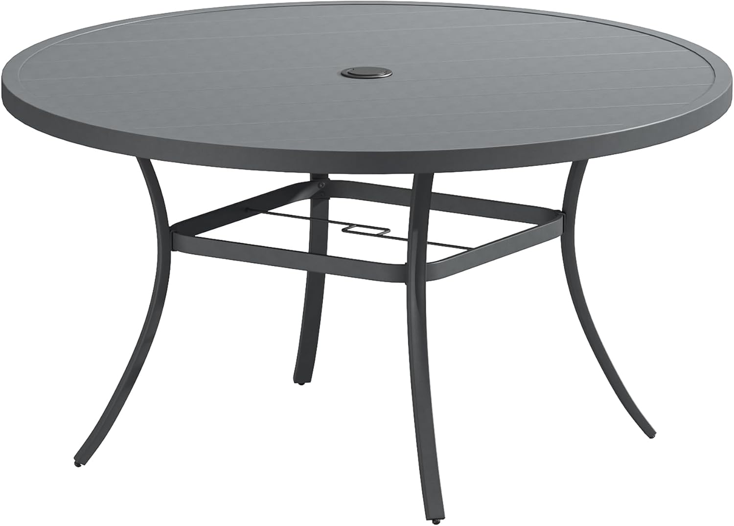VICLLAX 53" Outdoor Round Patio Table for Lawn Garden, All Weather Metal Round Patio Dining Table with Adjustable Umbrella Hole, Patio Table for 8 Person, Grey