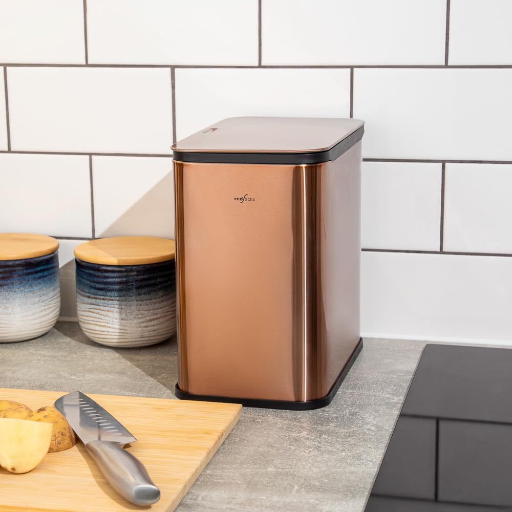 - Compact and Versatile Design – The RED FACTOR compost bin can hang on the inside or outside of your cabinet or be placed on your countertop, showcasing its sleek and stylish design. Thoughtfully crafted, it blends effortlessly into any modern kitchen while remaining highly functional.