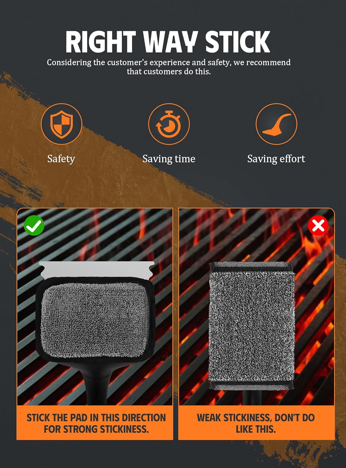 - 【EFFORTLESS CLEANING EXPERIENCE】The BBQ Scrubber Pad features a flexible steel fiber woven layer and powerful steam technology, making it easy to melt away years of grime and grease with minimal effort, saving you time and energy.