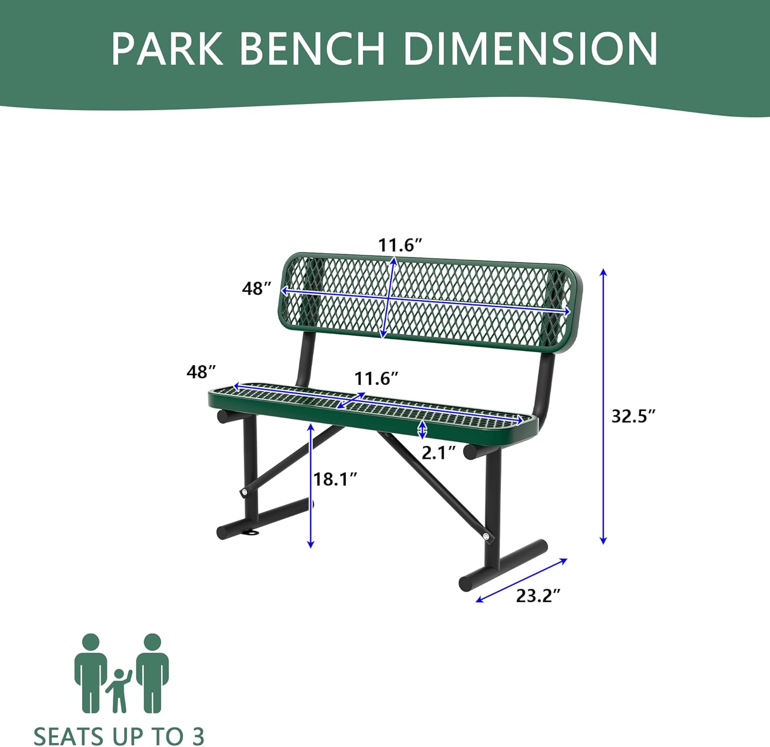 - ✦ Sleek and practical design: This heavy-duty park bench is an ideal choice for any indoor or outdoor space. Its open design not only reduces the weight of the chair, making it easy to carry, but also minimizes the accumulation of dust and moisture. Even in rainy or snowy weather, it can quickly dry and stay clean.