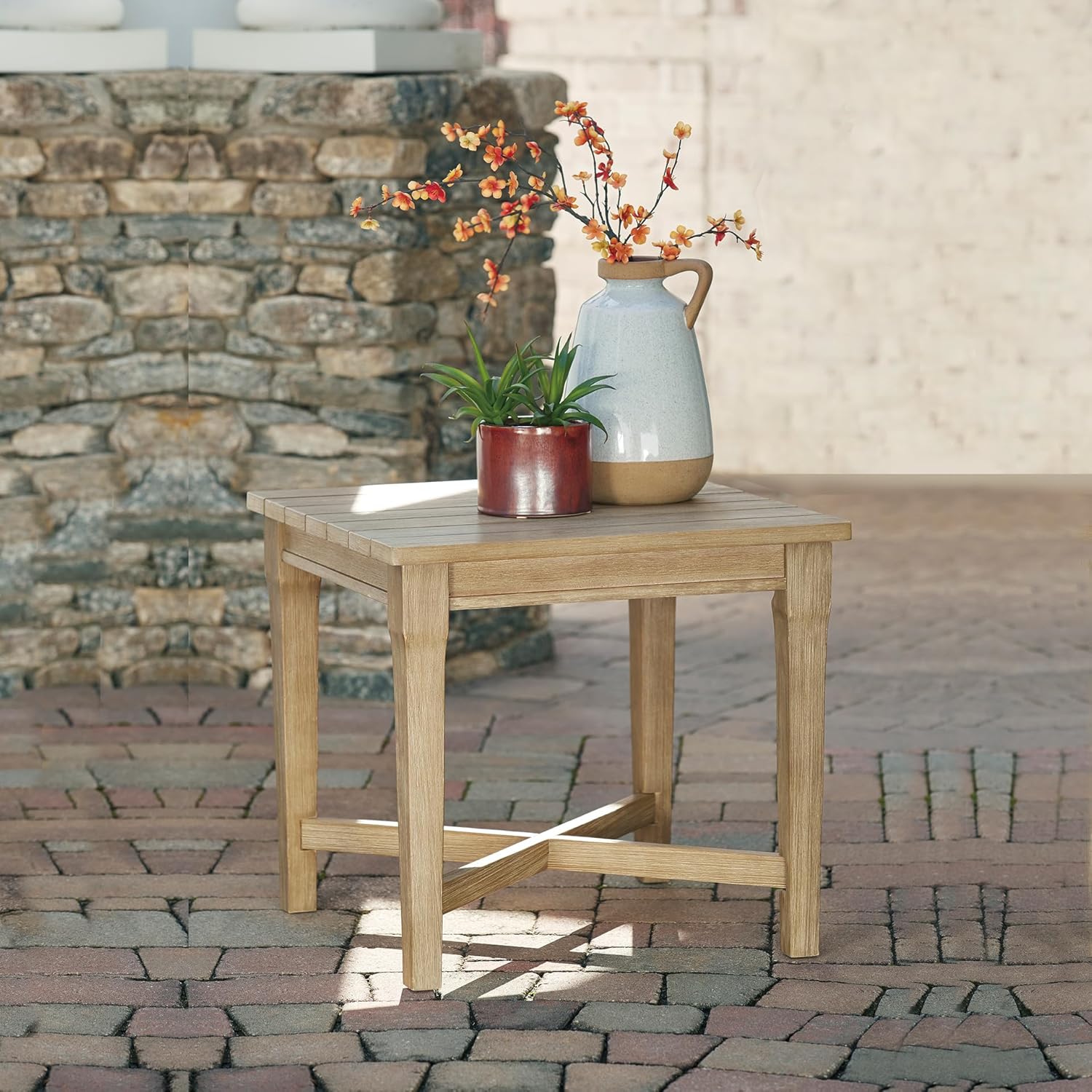 Signature Design by Ashley Outdoor Eucalyptus Carter Hall Patio End Table, Beige