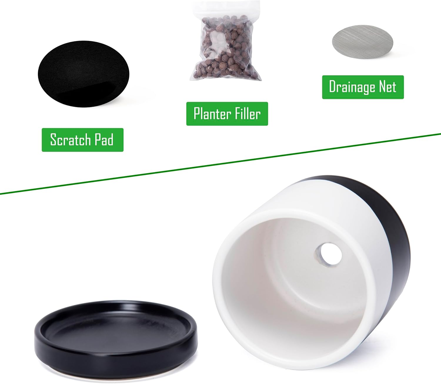 - Thoughtful Functionality: Includes a drainage hole to prevent overwatering, plus a mesh drainage net and scratch pad for added convenience.