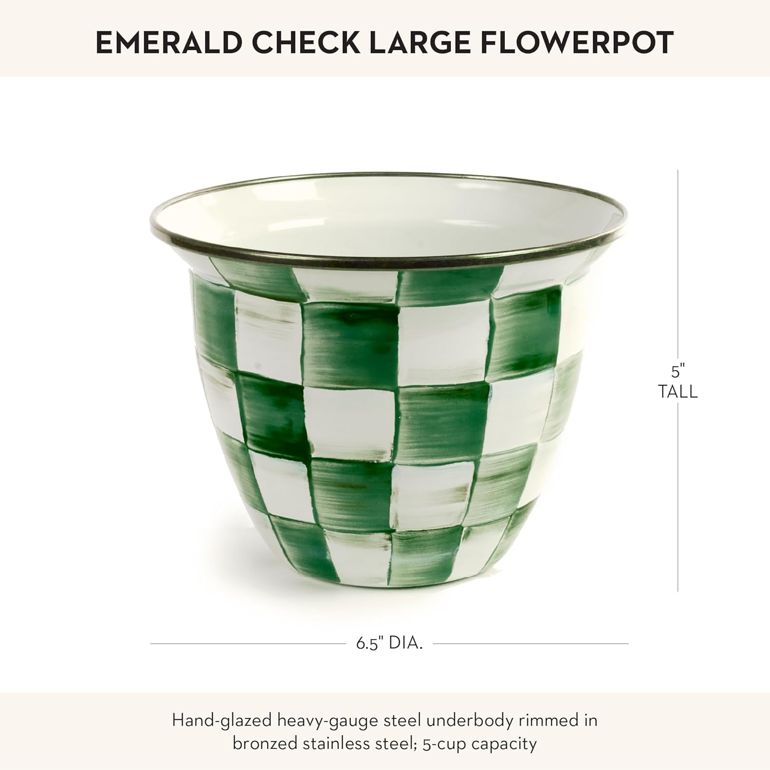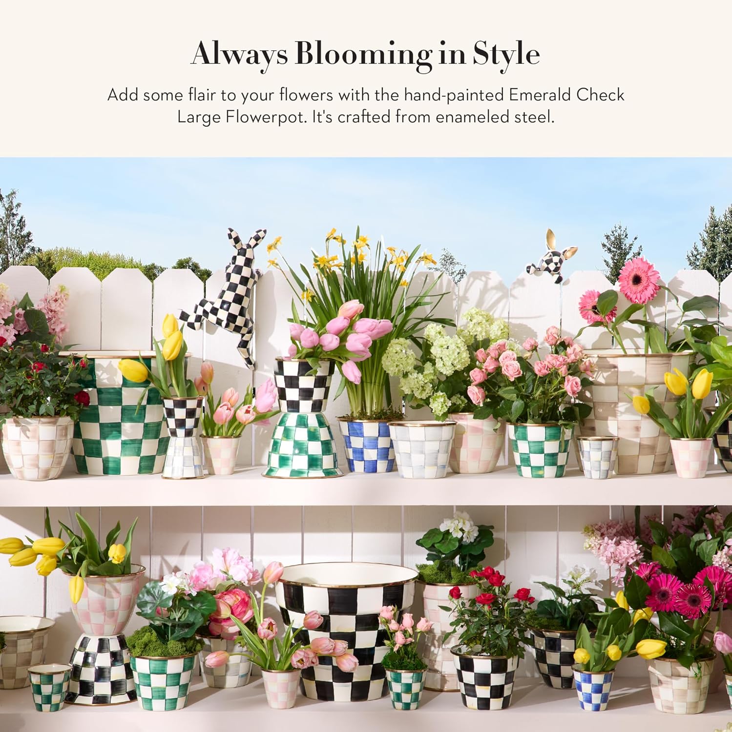 MACKENZIE-CHILDS Flowerpot, Decorative Garden Pot for Growing Plants, Green-and-White Emerald Check