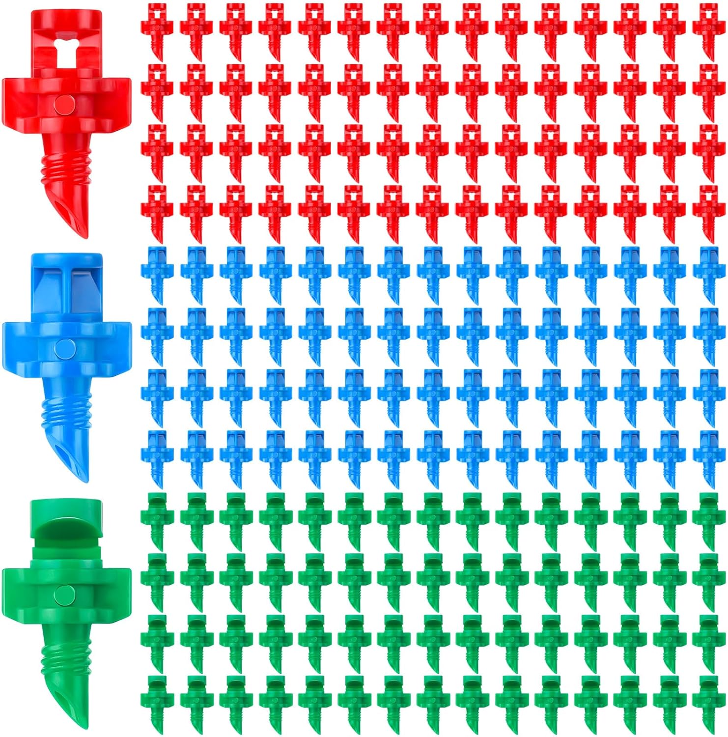 180Pcs 90/180/360 Degrees Drip Irrigation Emitters, 3 Color Heads Irrigation Misting Sprinkler, Refraction Micro Sprayer Applicable for Lawn Watering System
