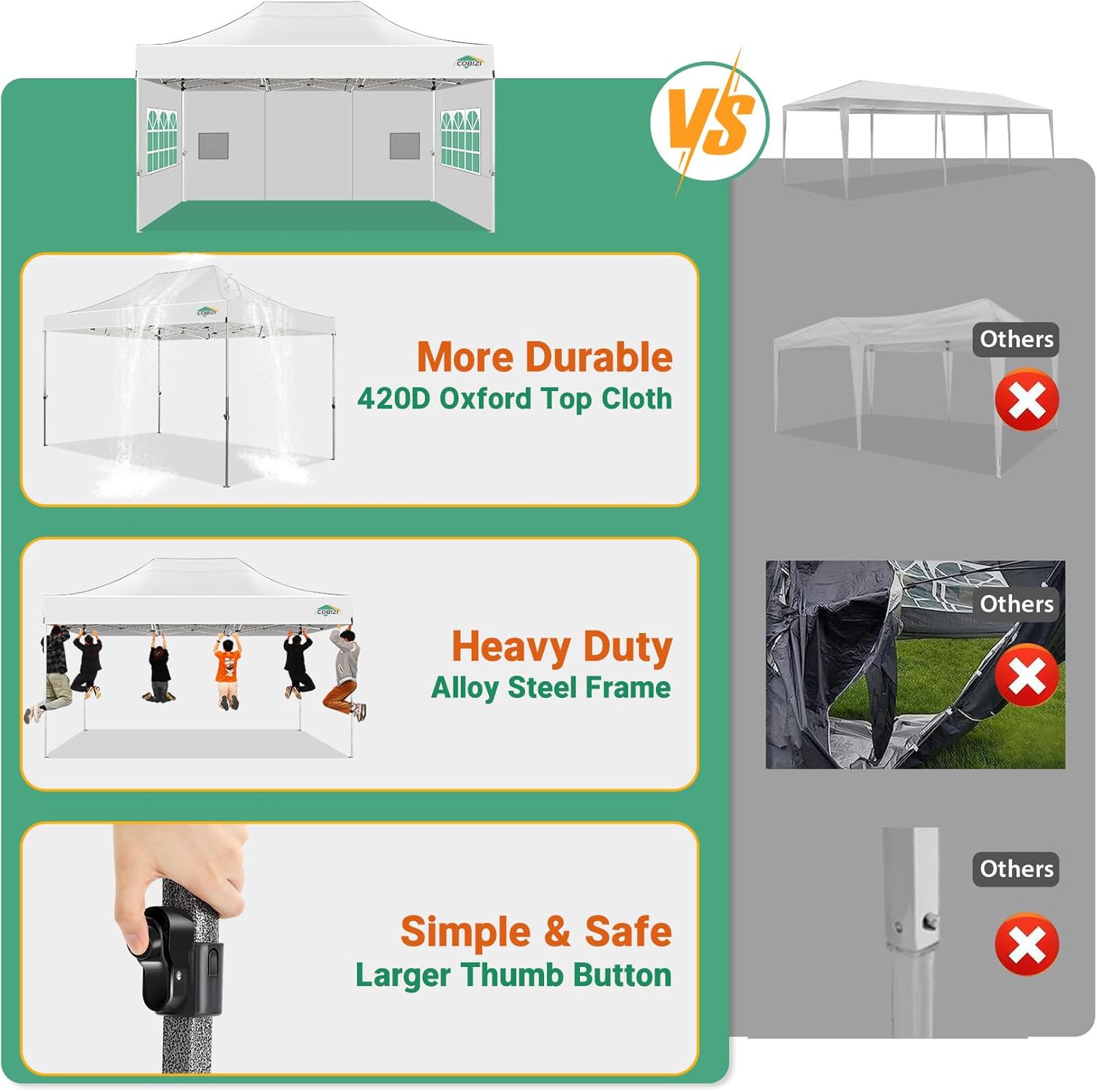 - ✅ 【After-Sales Service】We recommend stowing away the 10x15 canopy with 4 sidewalls during instances of strong winds, heavy rain, or snowfall. We are dedicated to providing you with the best service. If you have any questions or concerns, please feel free to contact us. Choosing us will undoubtedly be the right decision.